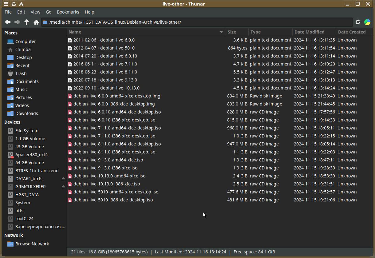 Чтобы лишний раз не запутаться - было решено отсортировать образы, итого в основной папке оказалось 47 образов Debian 7.0.0 - 12.0.0, в другой 14 образов, они будут на подхвате, возможно даже не пригодятся вообще, в текстовых файлах сохранены оригинальные MD5 контрольные суммы, так что при возникновении спорных ситуаций я всегда могу сверить MD5 хэш образа с оригинальным, тем самым исключив вероятность ошибки по вине передачи данных при скачивании: