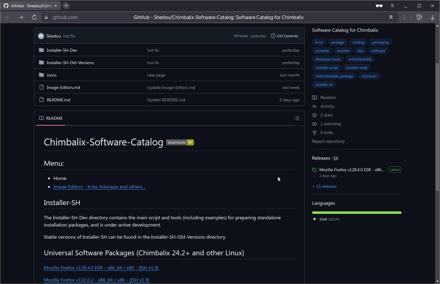 Найти этот установочный пакет можно в репозитории GitHub (Chimbalix-Software-Catalog), там же и сам Installer-SH разрабатывается: