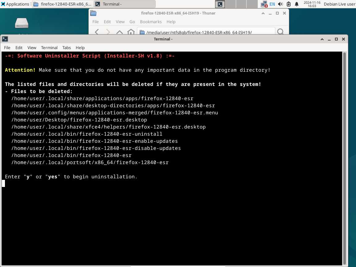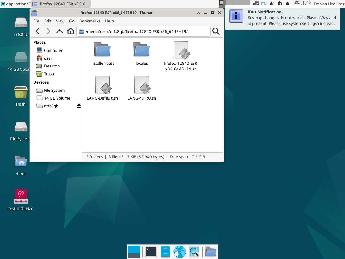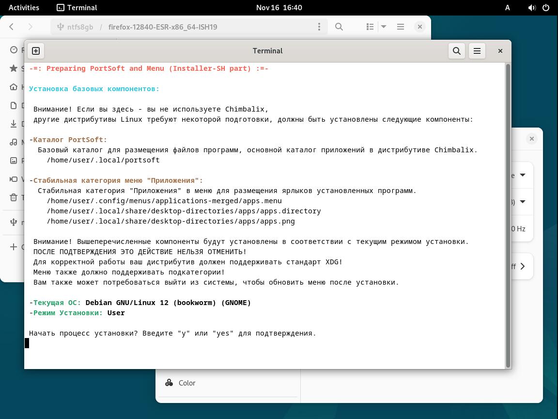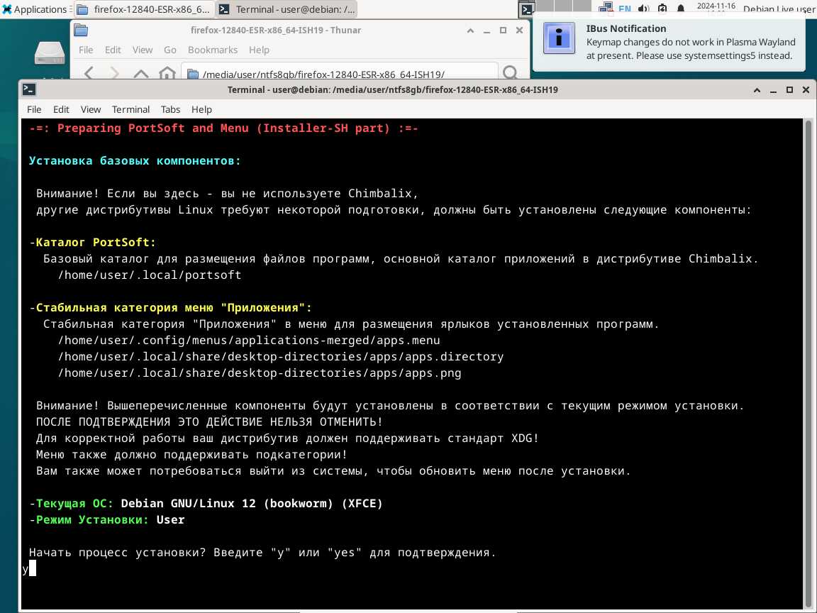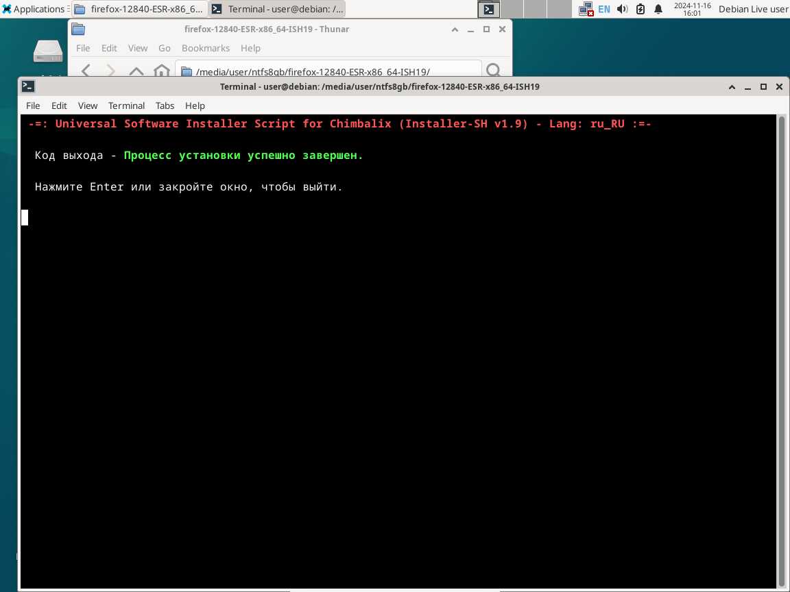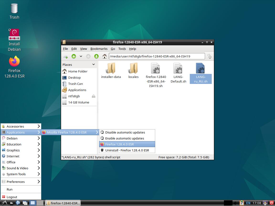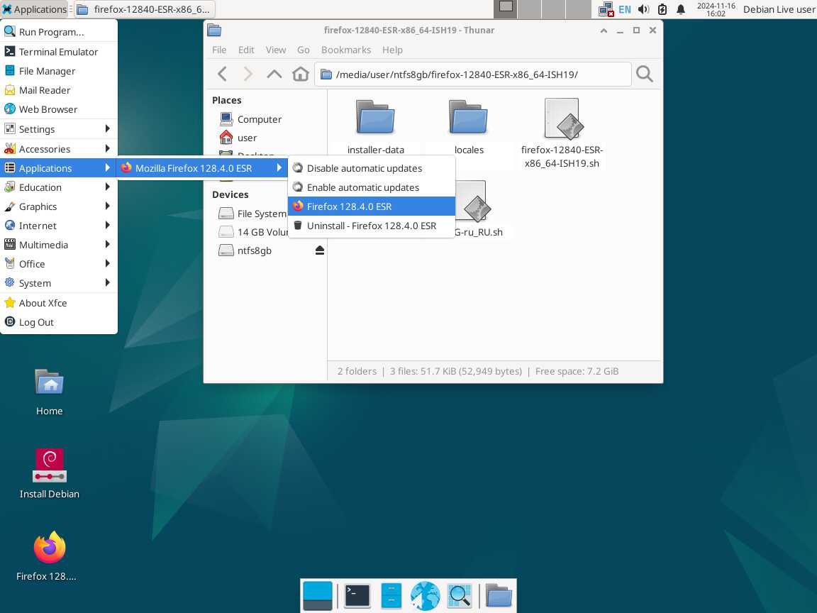 Следом был собран автономный установочный пакет браузера Mozilla Firefox 128.4.0 ESR в формате Installer-SH, там же кратко были расписаны проблемы обычных линуксоидных способов распространения программ, почему собственно я решил разработать свой установочный пакет.