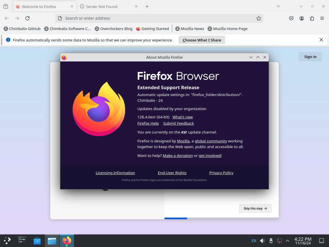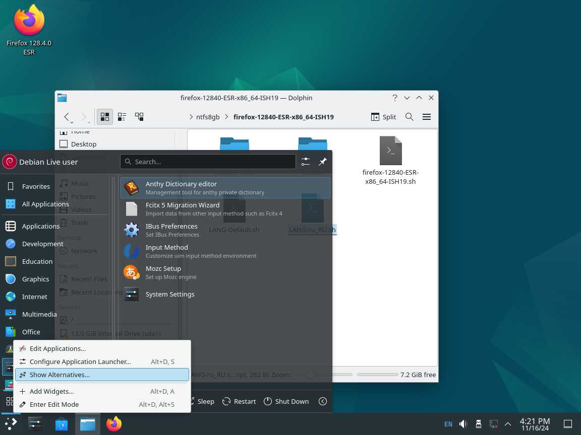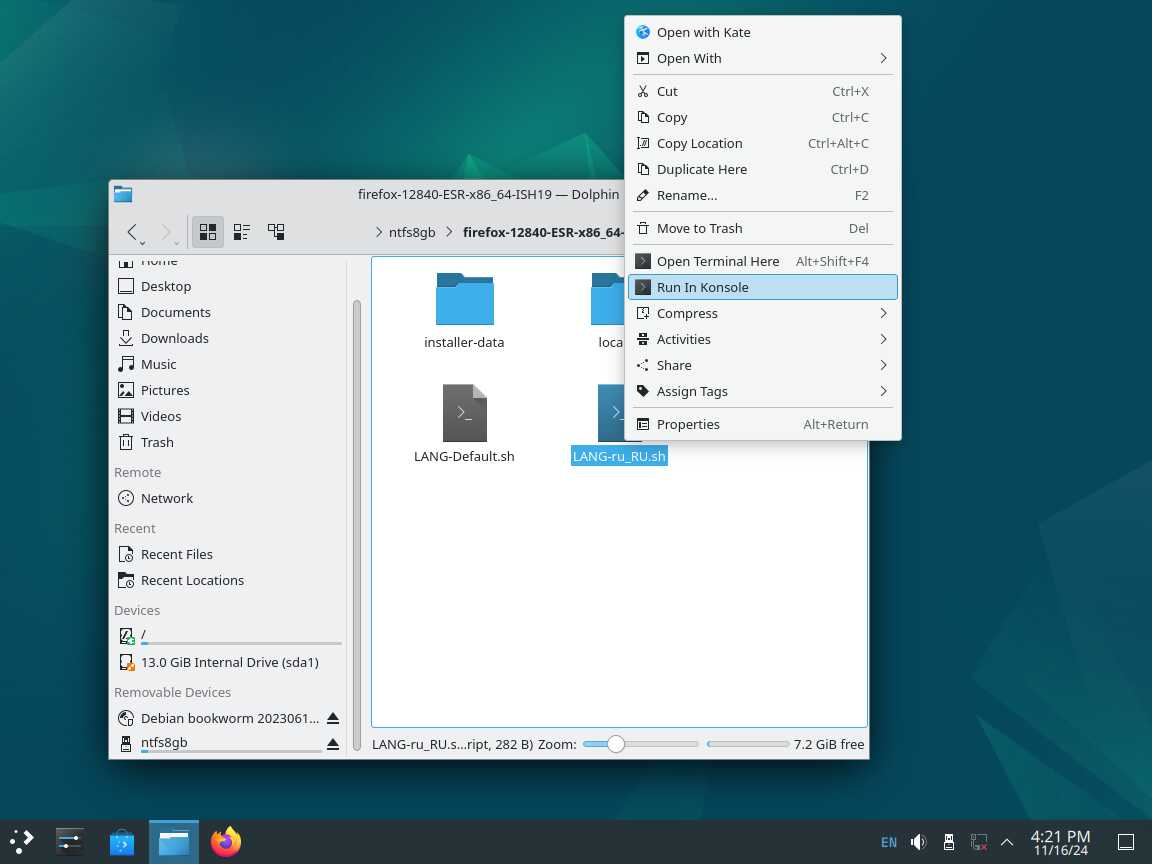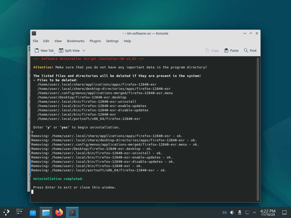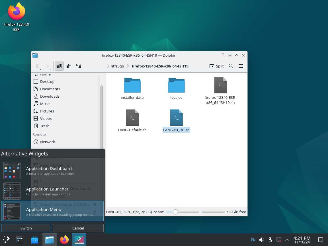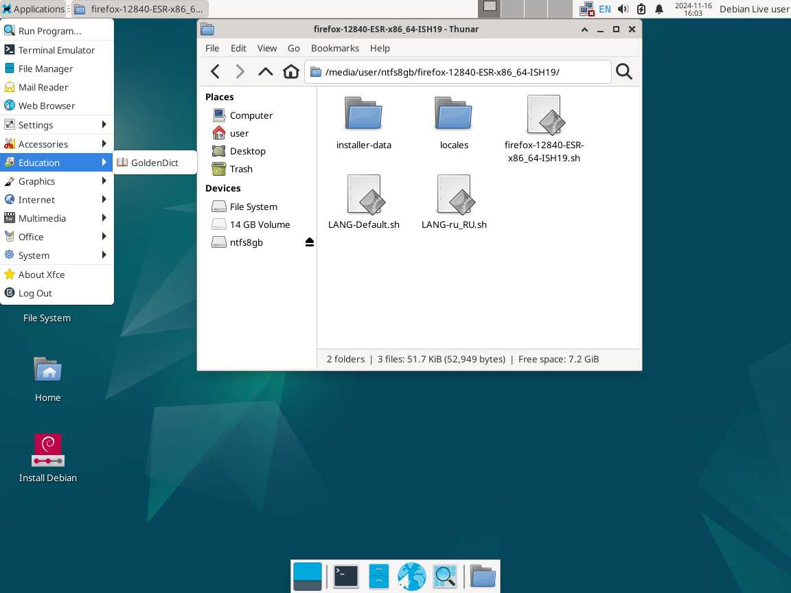 Следом был собран автономный установочный пакет браузера Mozilla Firefox 128.4.0 ESR в формате Installer-SH, там же кратко были расписаны проблемы обычных линуксоидных способов распространения программ, почему собственно я решил разработать свой установочный пакет.