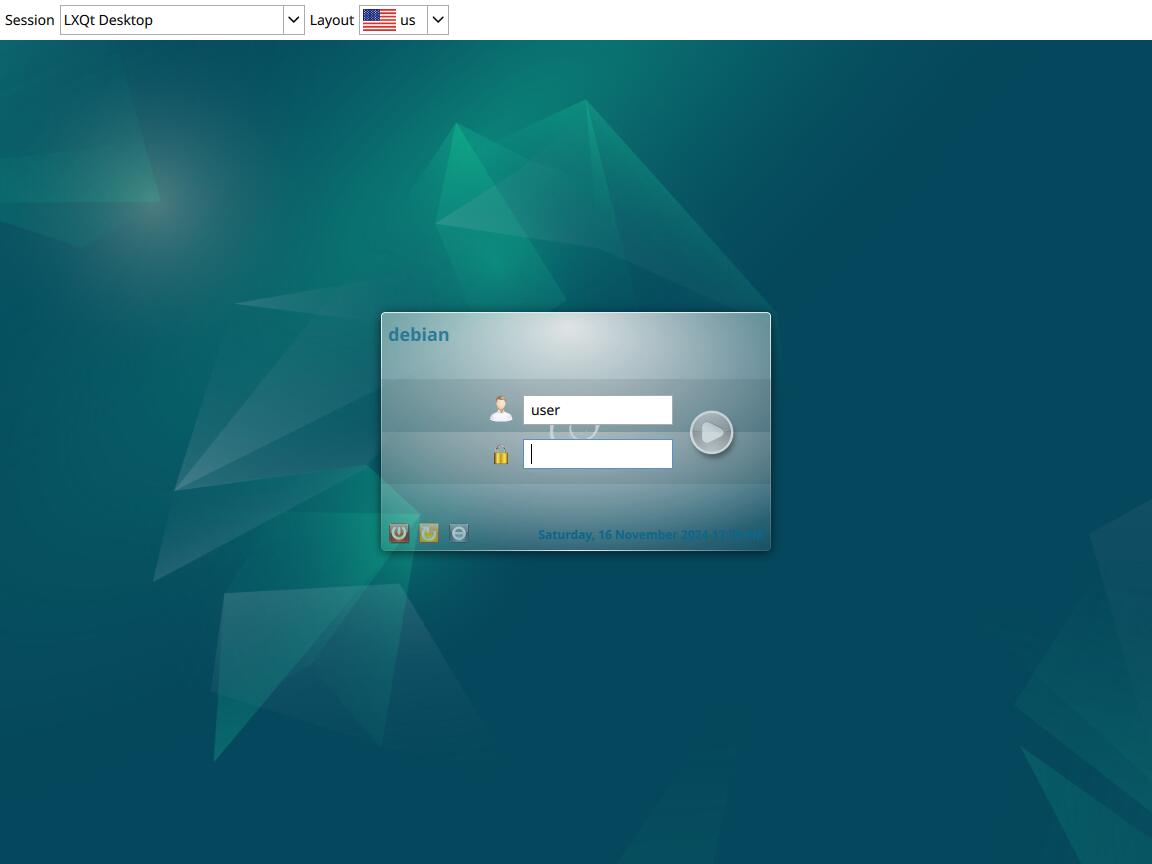 К сожалению, сессия оказалась заблокирована паролем, и мне пришлось угадывать пароль, ведь он нигде не написан, скажу сразу, пароль от Debian 12 LXQT это "live":