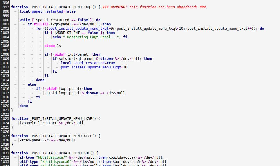 Я не знаю что делать с LXQT, ведь панель этого рабочего окружения не имеет функции перезапуска, чтобы принудительно обновить "застрявшее" меню, а писать костыли весьма утомительно, особенно когда перезапущенная LXQT панель отказывается монтировать накопители, ибо теряются "связи"...