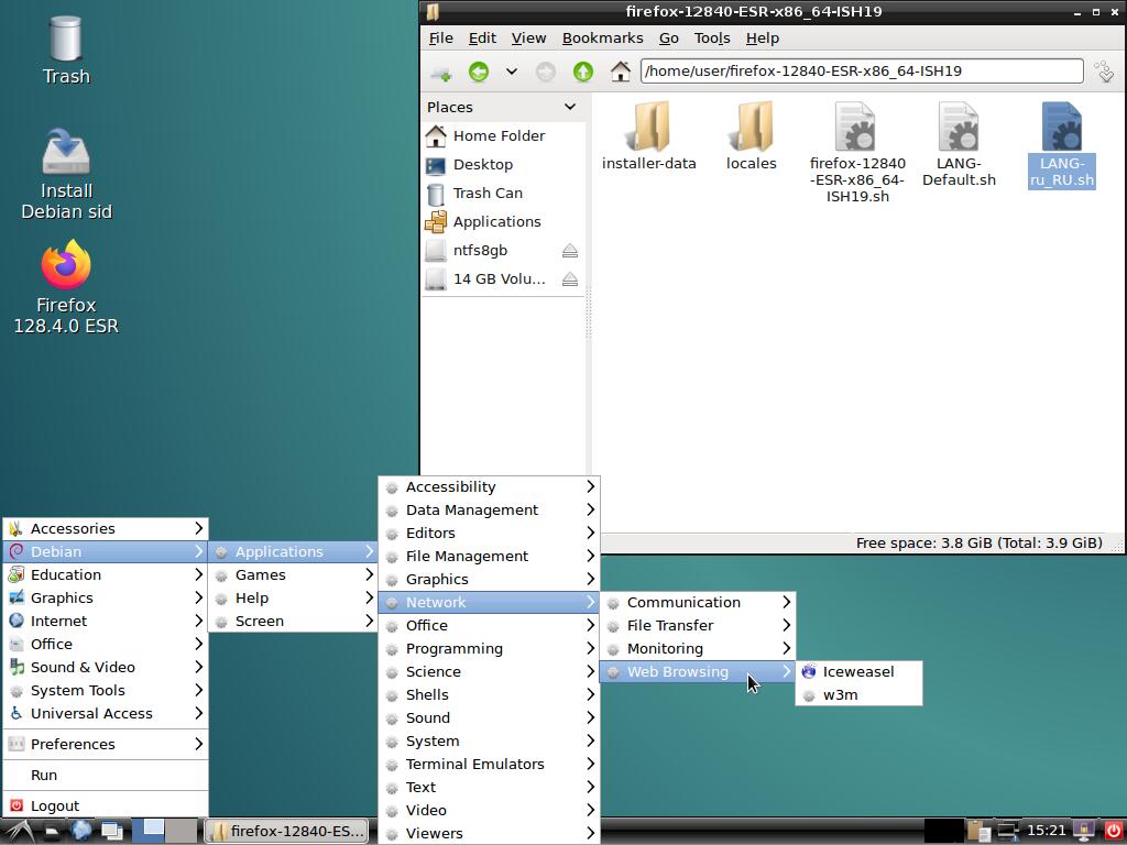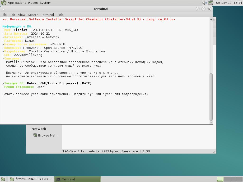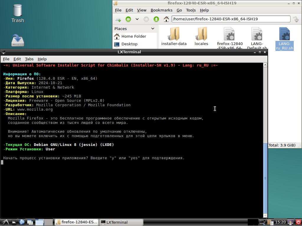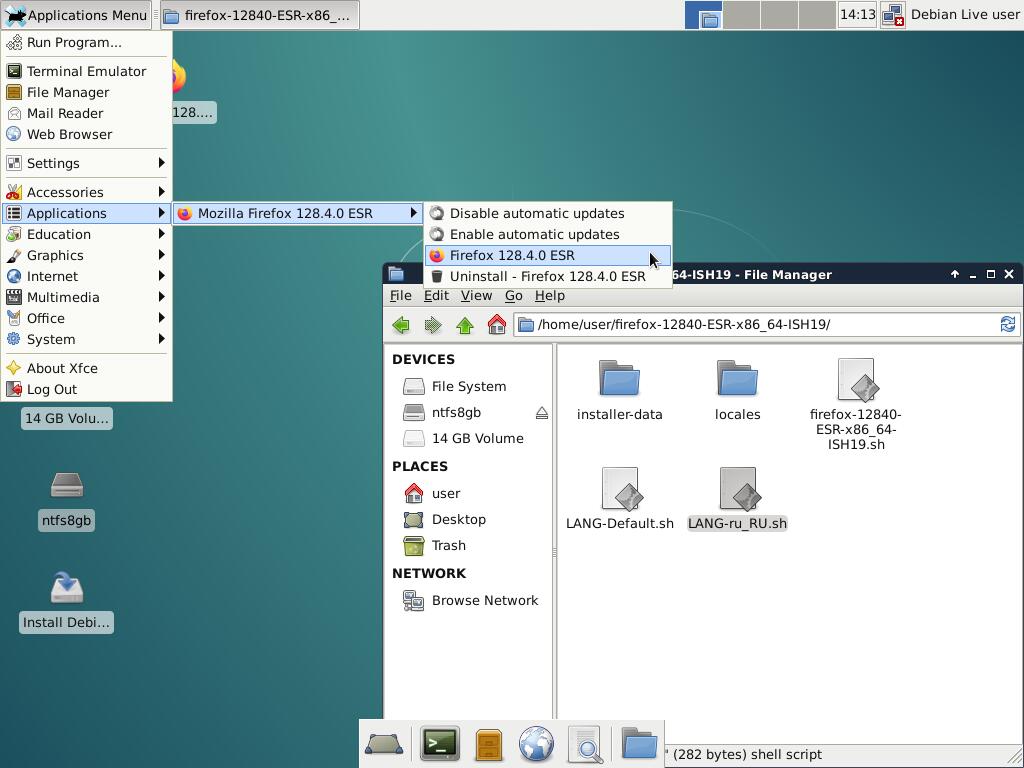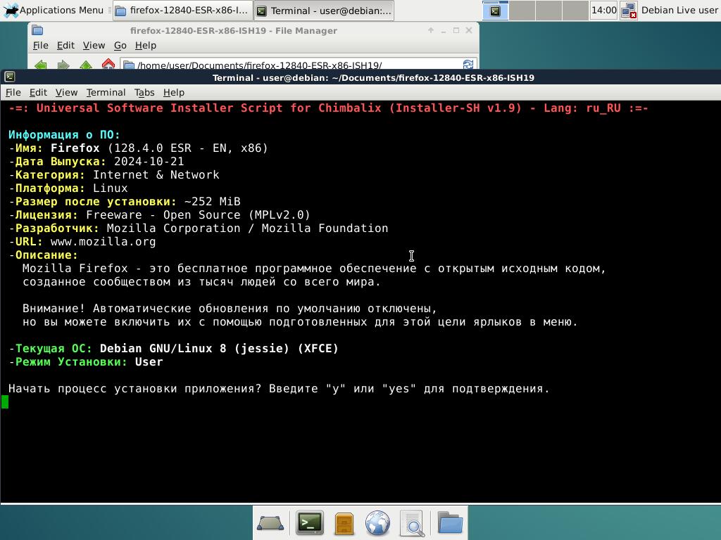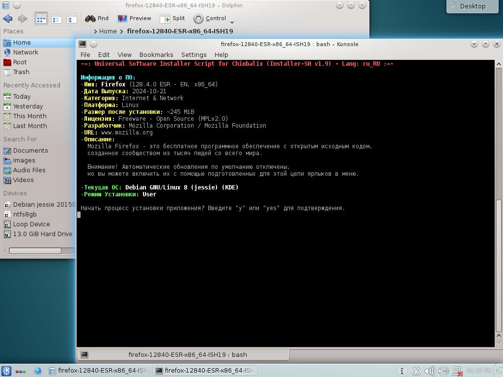 Тестируем Installer-SH v1.9 с браузером Mozilla Firefox 128 в Debian 8