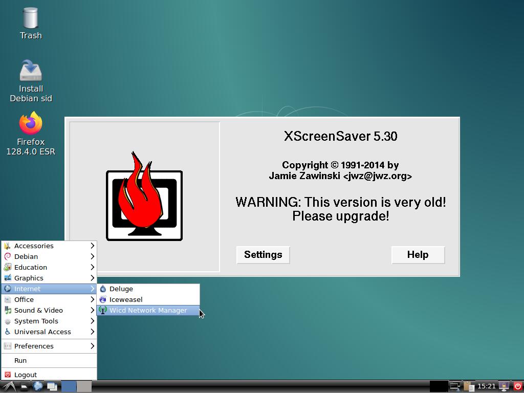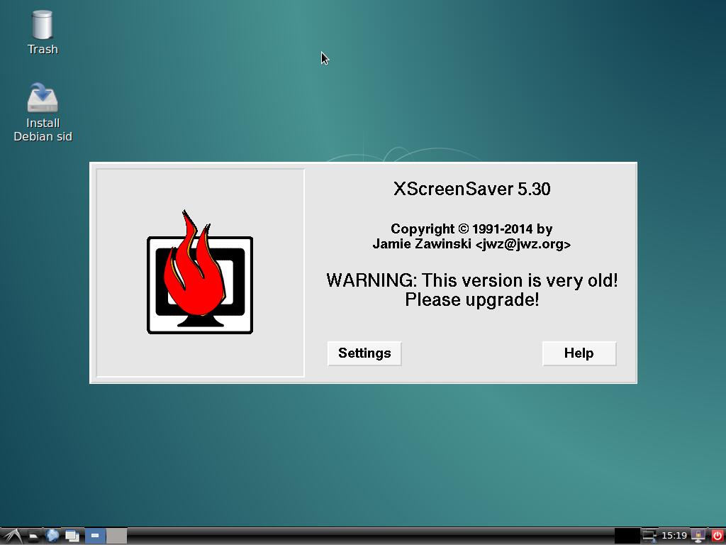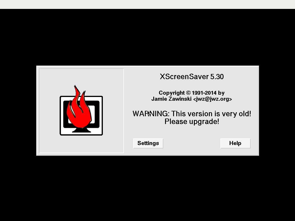 В прошлый раз я не обращал на это внимание, но сейчас успел сделать скриншот, да, встроенный в линукс XScreenSaver навязчиво требует обновлений при запуске, только вот как его обновить, если репозитории уже давно мертвы, коими так любят гордиться линуксоиды чуть ли не превознося как лучший источник приложений...