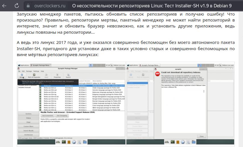 О несостоятельности репозиториев Linux: Тест Installer-SH v1.9 в Debian 9