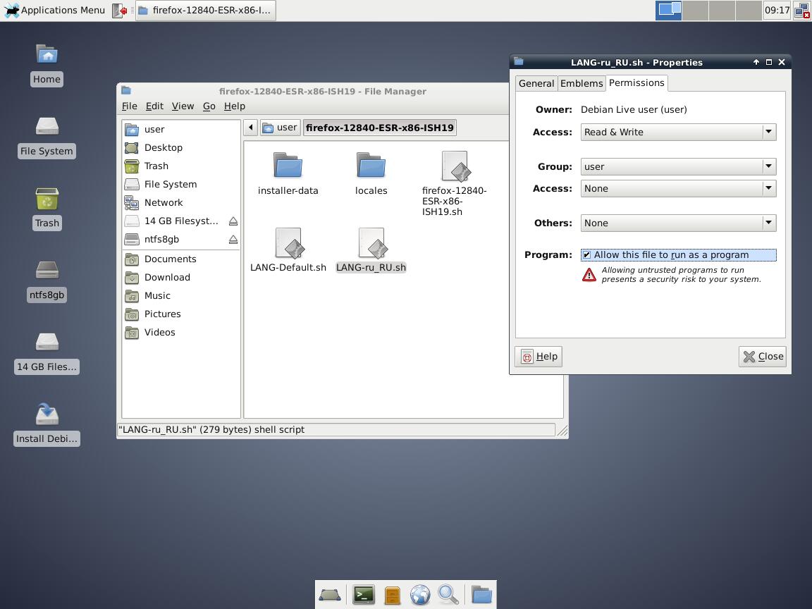 2) Тест установочного пакета Mozilla Firefox в формате Installer-SH v1.9: Debian 11 и Windows XP