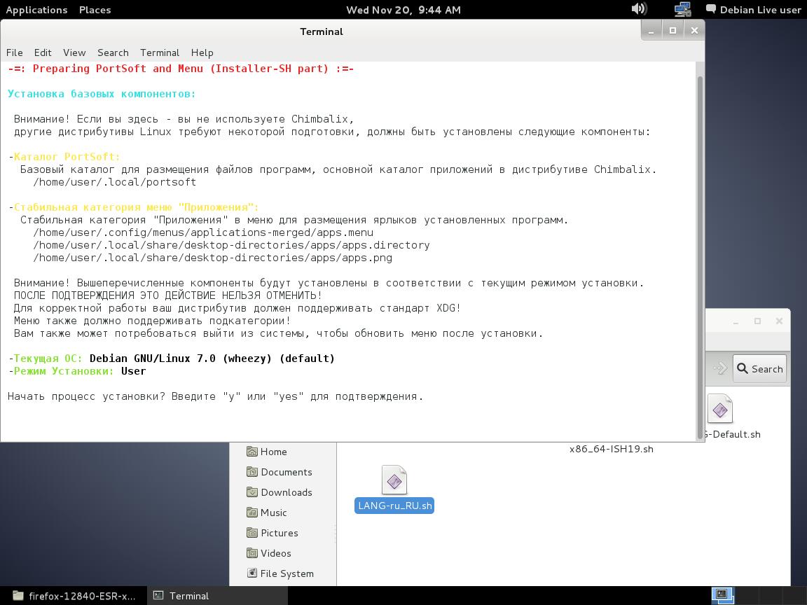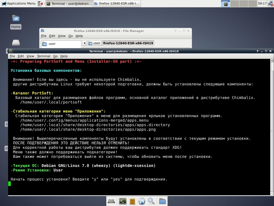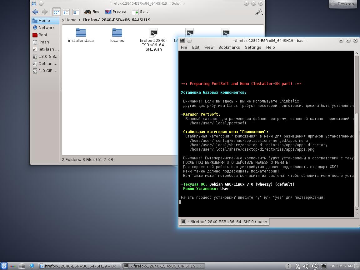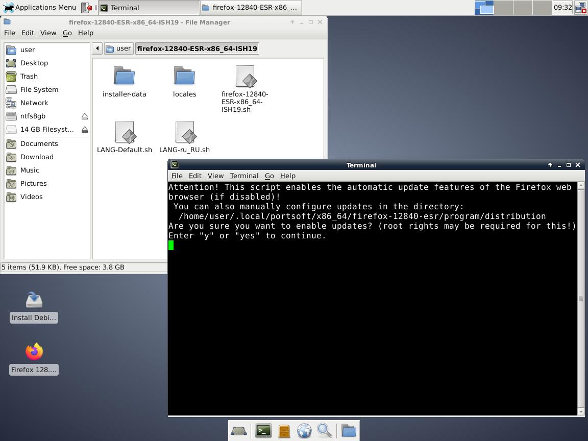 5) Тестируем Installer-SH v1.9 с браузером Mozilla Firefox 128 в Debian 8