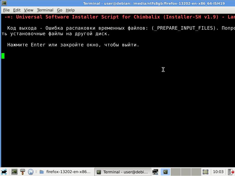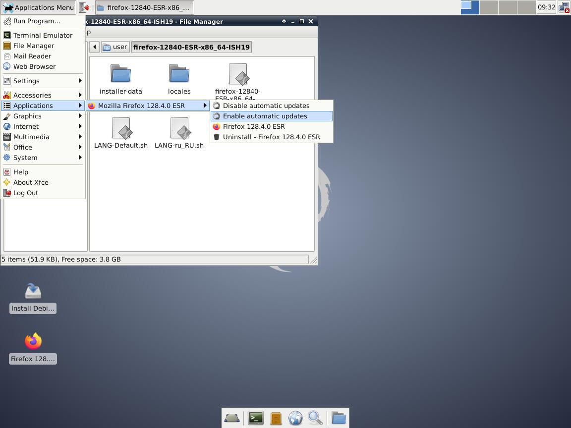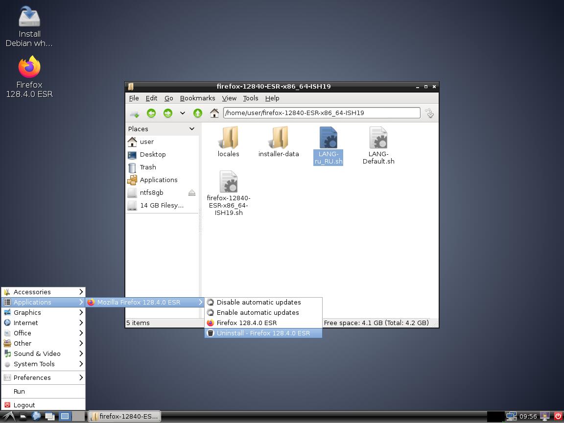 3) Тест установочного пакета Mozilla Firefox в формате Installer-SH v1.9: Debian 10