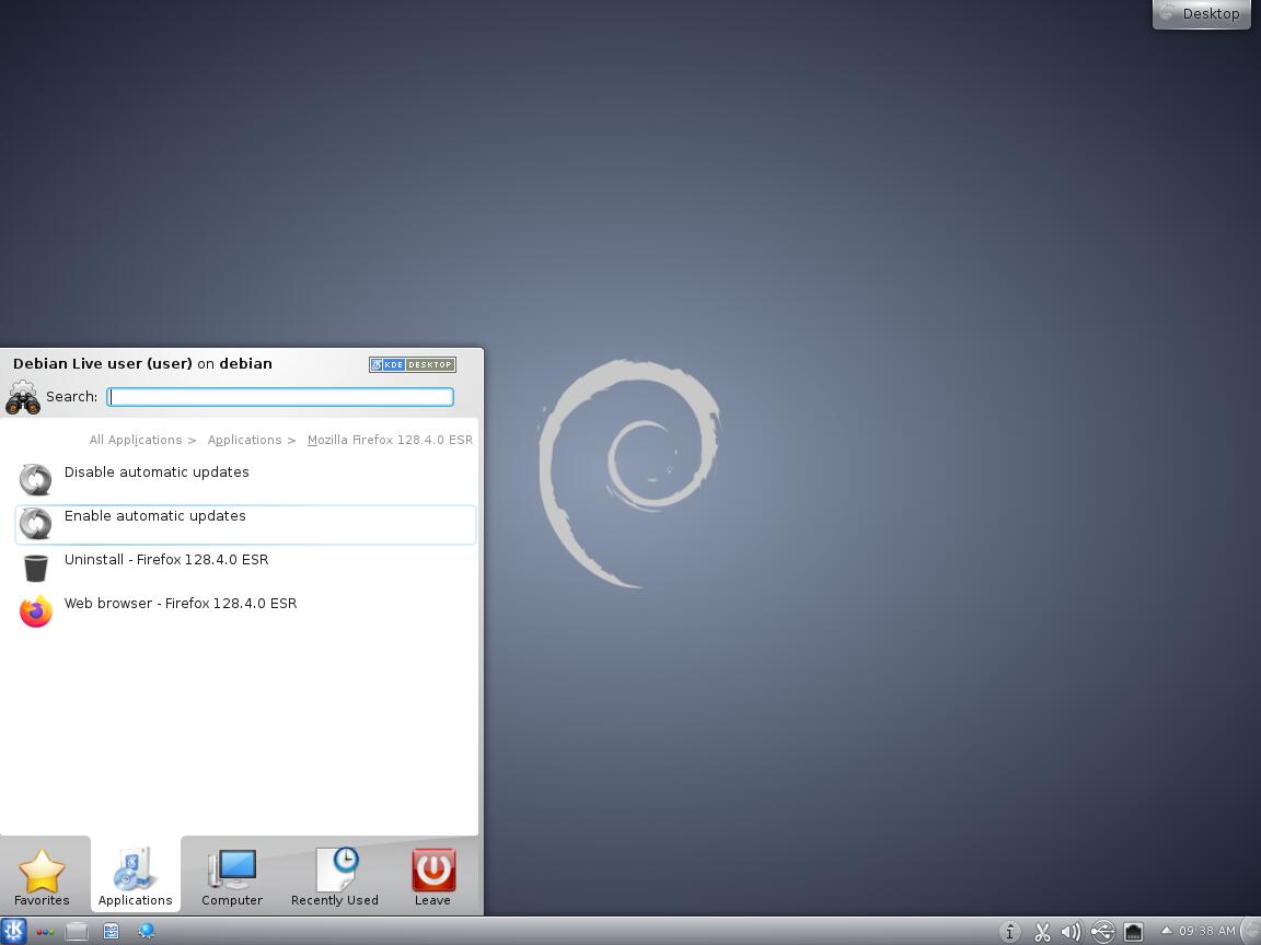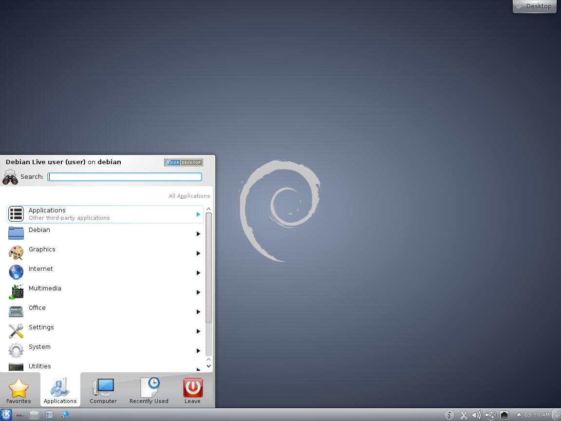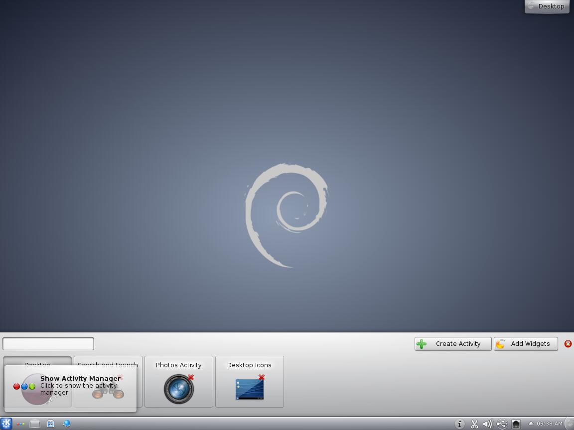 К сожалению, и в этой версии Debian с рабочим окружением KDE используются Activities, вместо полноценного и функционального рабочего стола...