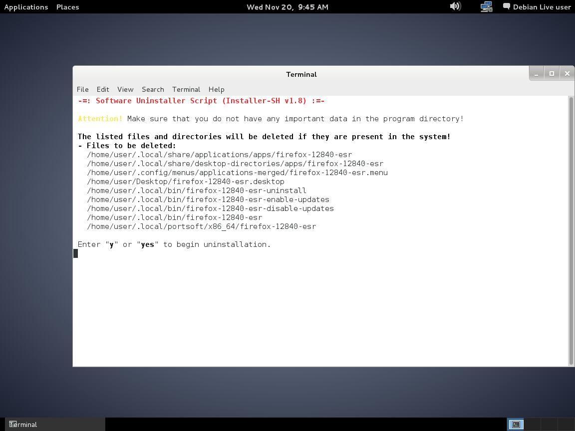 При установке приложений, основные проблемы были в неадекватном стандартном оформлении терминала таких рабочих окружениях как GNOME, Cinnamon и MATE, так же проблемы с размером окна встречались во многих DE, но это всё несущественно, просто нужно доработать Installer-SH, взять под жёсткий контроль оформление, добавить пару костылей для терминалов, и таким способом большинство подобных проблем можно решить.