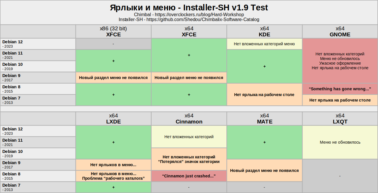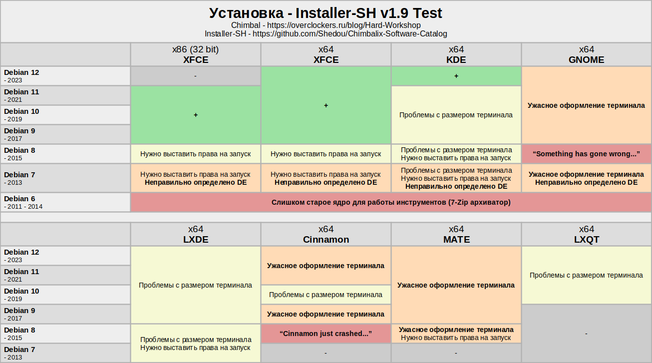Ранее были протестированы линуксы 2015 - 2023 годов, это были Debian 8 - 12 в разных исполнениях, и в целом Installer-SH продолжал работать несмотря ни на что, однако уже с Debian 9 начались некоторые проблемы в линуксах, а в Debian 8 всё только усугубилось, дистрибутив с худшим из известных мне рабочим окружением GNOME даже не запустился...