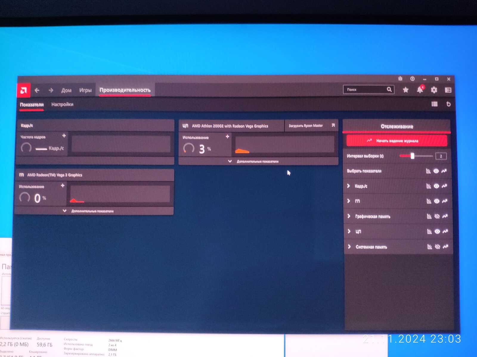 Вот и контрольная панель, выглядит скудно, но это лишь потому, что используется заблокированный Athlon 200GE с Vega 3: