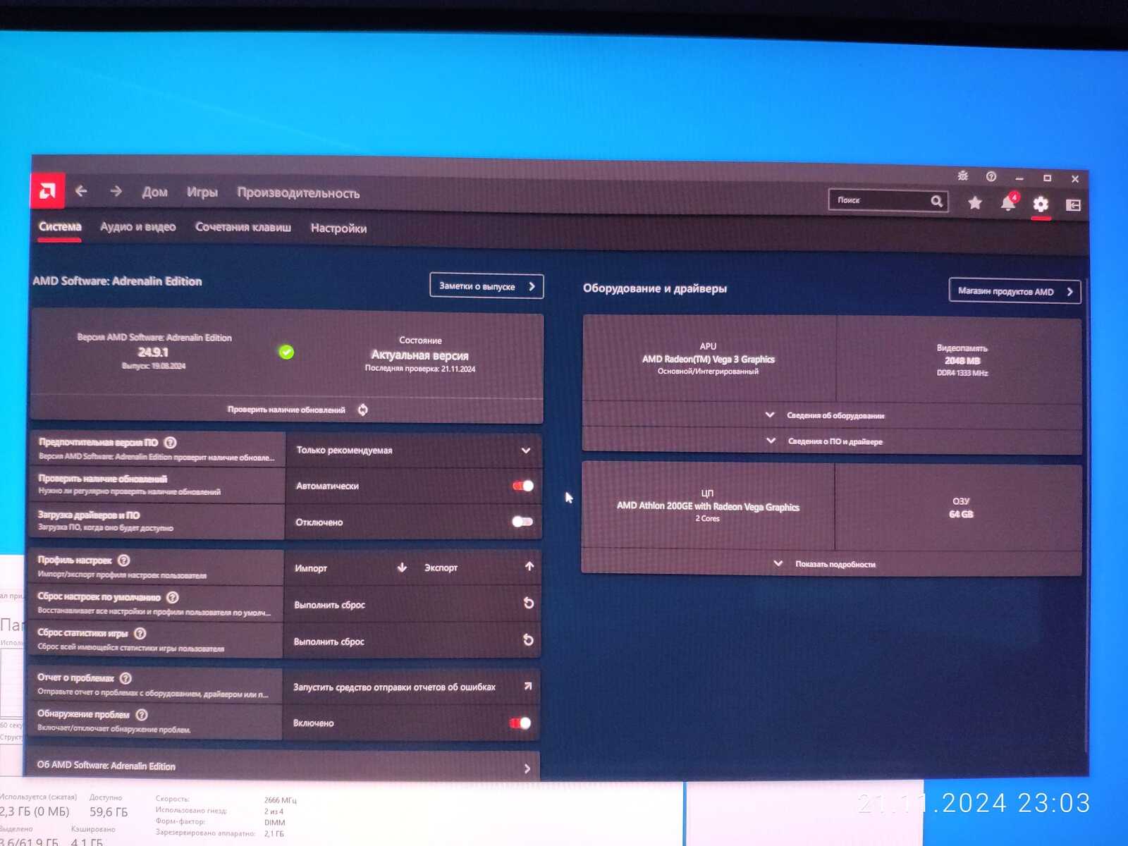 Но прежде чем лезть в настройки - проверяю диспетчер задач, и да, прожорливость AMD драйверов никуда не делась, почти пол гигабайта выделенной оперативной памяти, и порядка 150-160 МБ видеопамяти, хотя если честно, раньше драйверы "красного лагеря" жрали гораздо больше памяти с видеокартами R9 - RX: