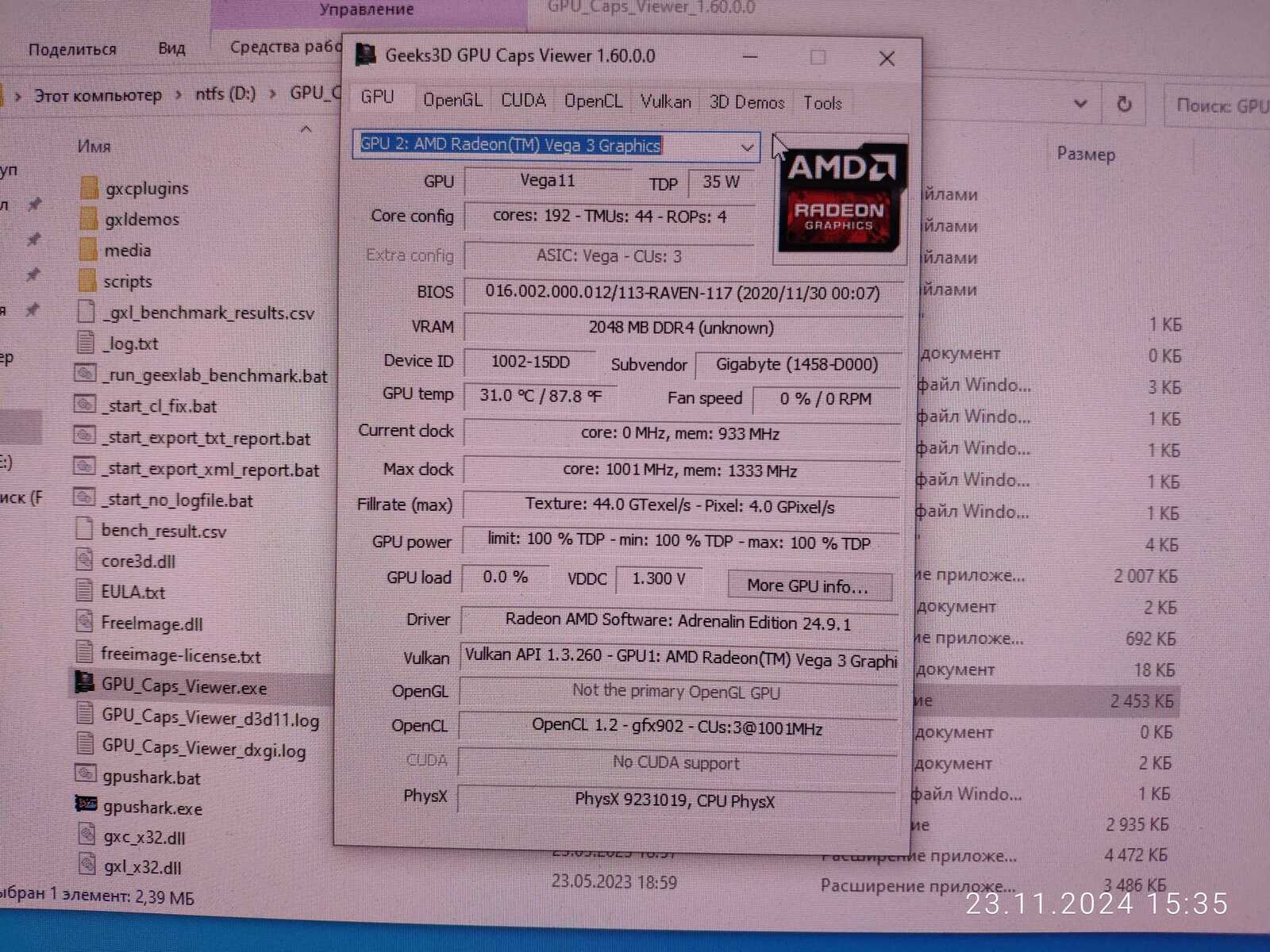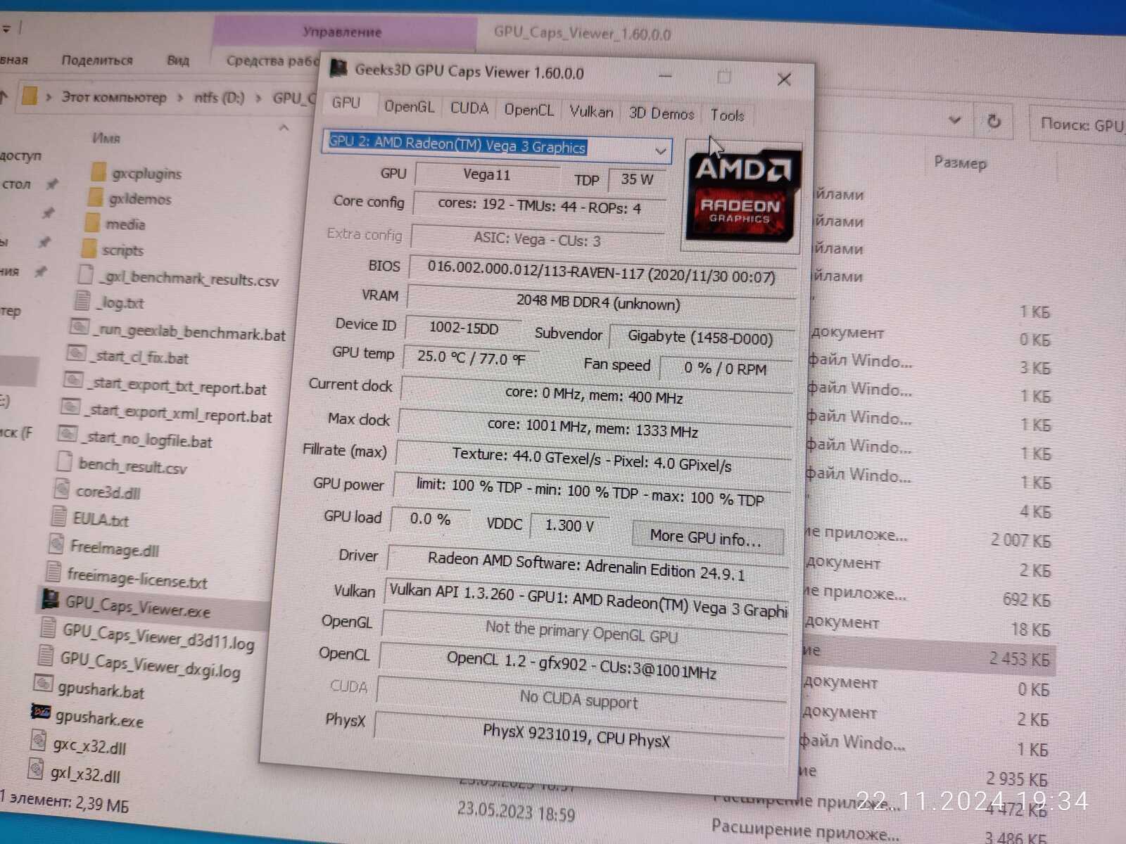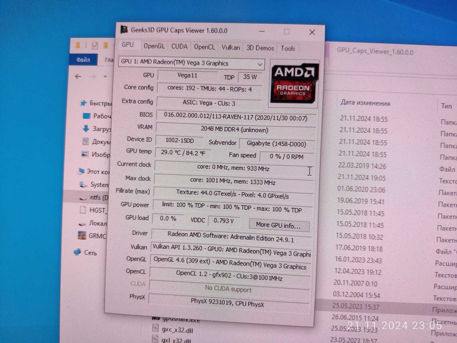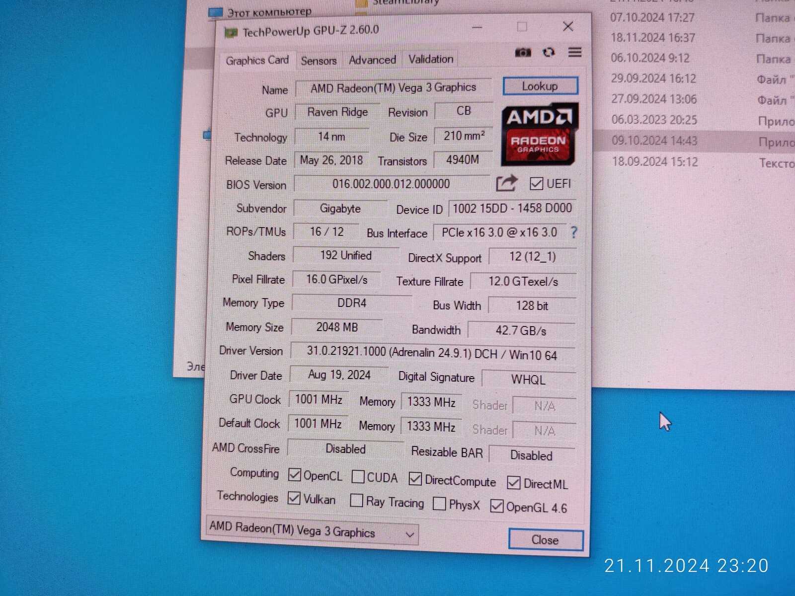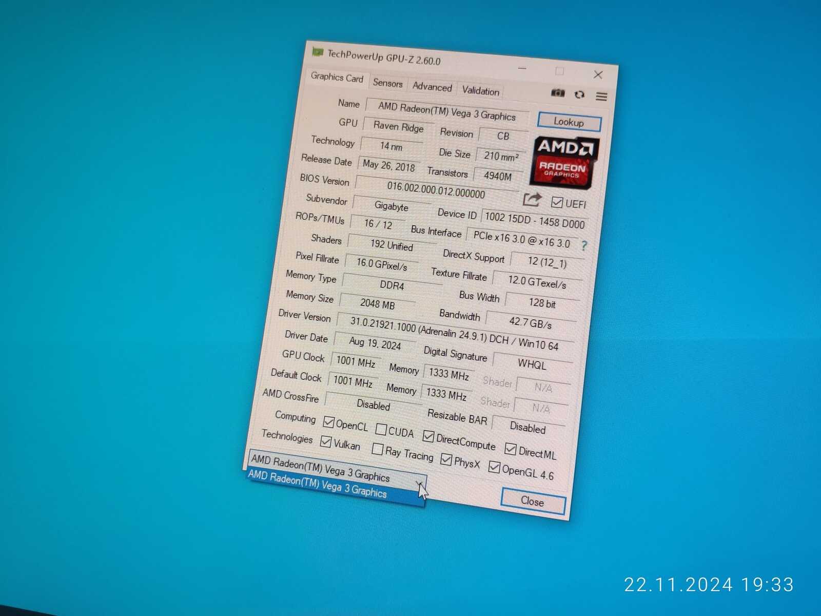 Так или иначе, Vega 3 работает, правда Vulkan API подозрительно старой версии 1.3.260, должна быть минимум 1.3.280... Ах, да, совсем забыл, AMD ведь кинула обладателей видеокарт старее RX 5000 с драйвером Vulkan API, да и OpenCL всё такой же старой версии 1.2...
