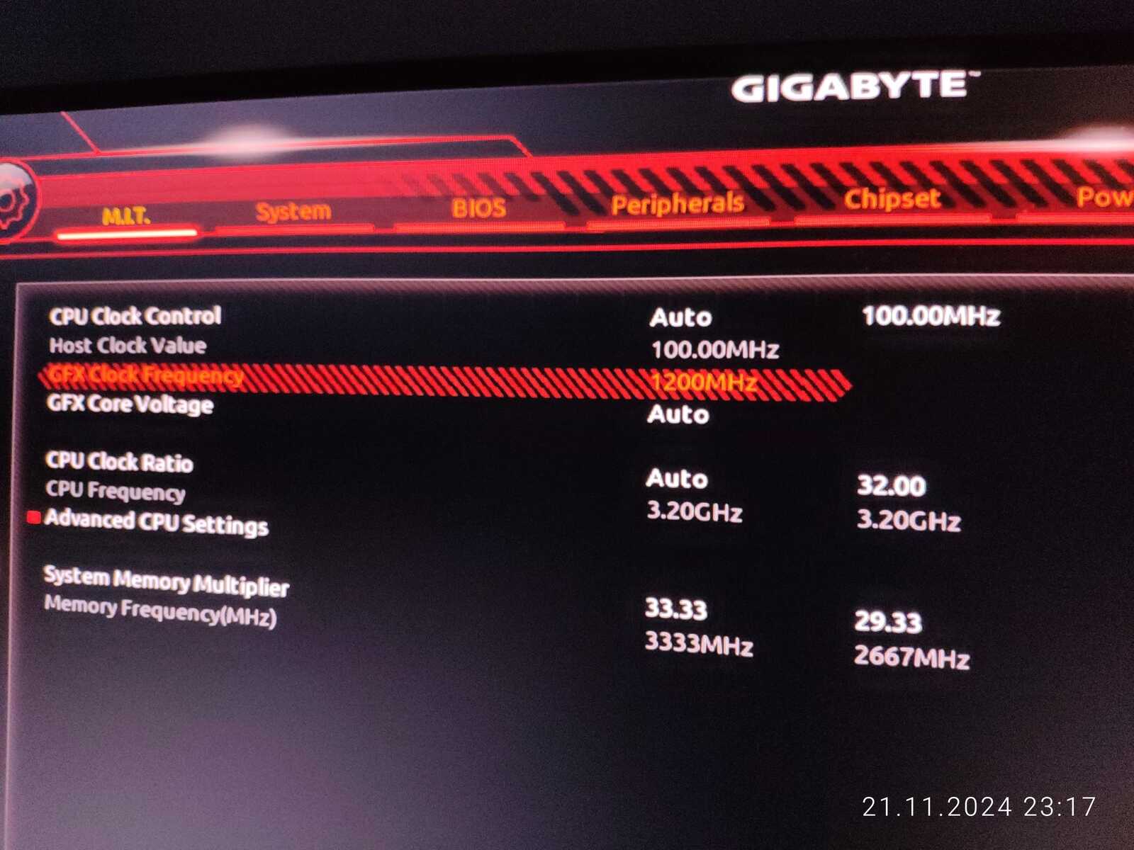 Я много танцевал с бубном вокруг настроек биоса, даже проверил возможности разгона, но разгонялись только ядра процессора множителем, увы:
