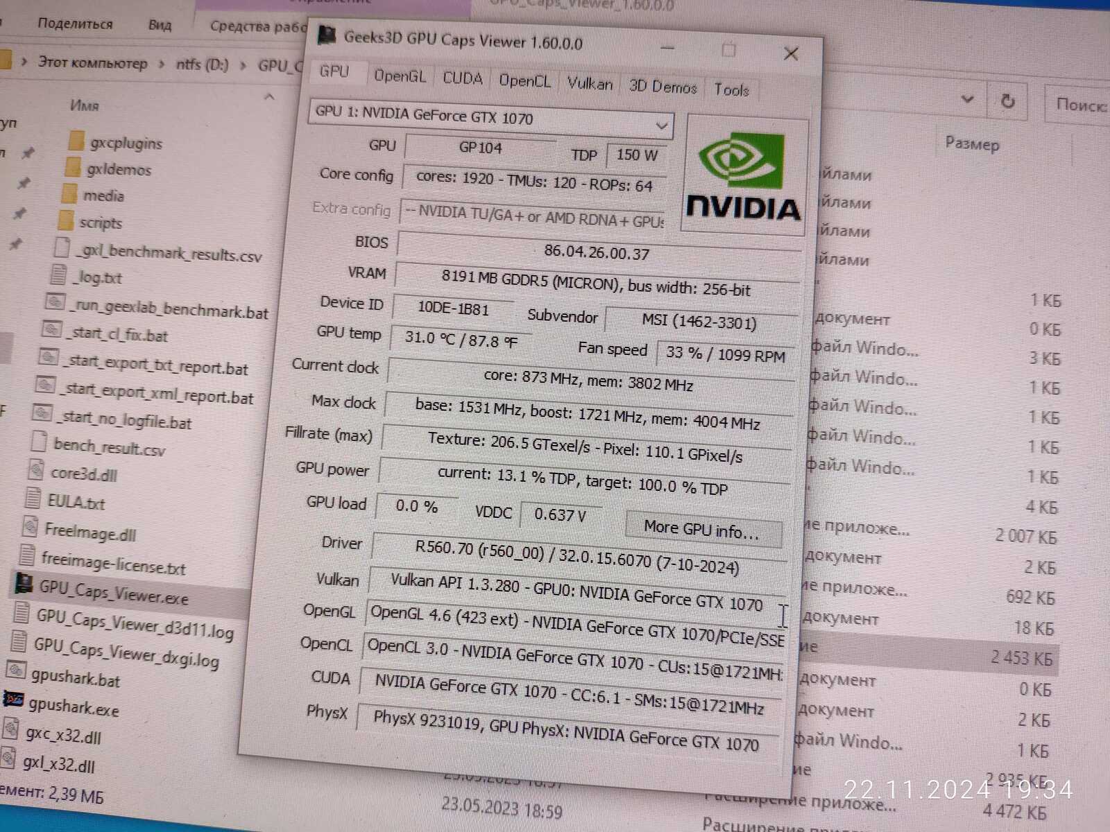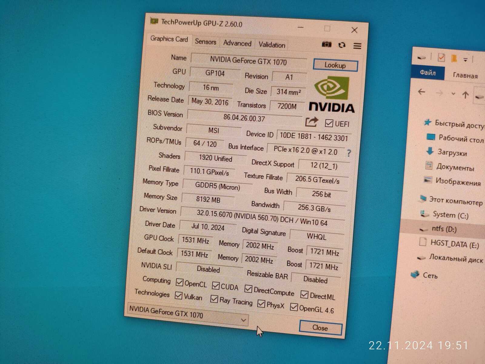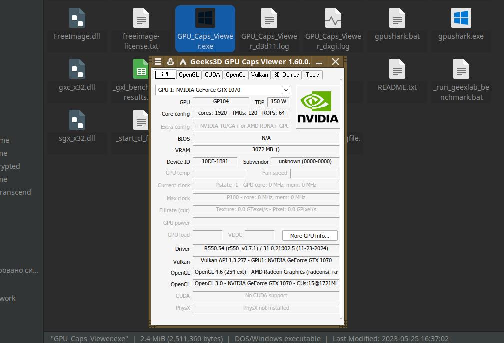 Собственно вот и разница между AMD и NVIDIA, у Radeon Vega 3 (2018 год выхода) поддержка OpenCL на уровне версии 1.2, а Vulkan 1.3.260, тем временем GeForce GTX 1070 (2016 год выхода) поддерживает OpenCL 3.0 и Vulkan 1.3.280, и это ещё не самые последние драйверы NVIDIA установлены, можно и более новые установить, там наверняка ещё выше будет версия Vulkan API: