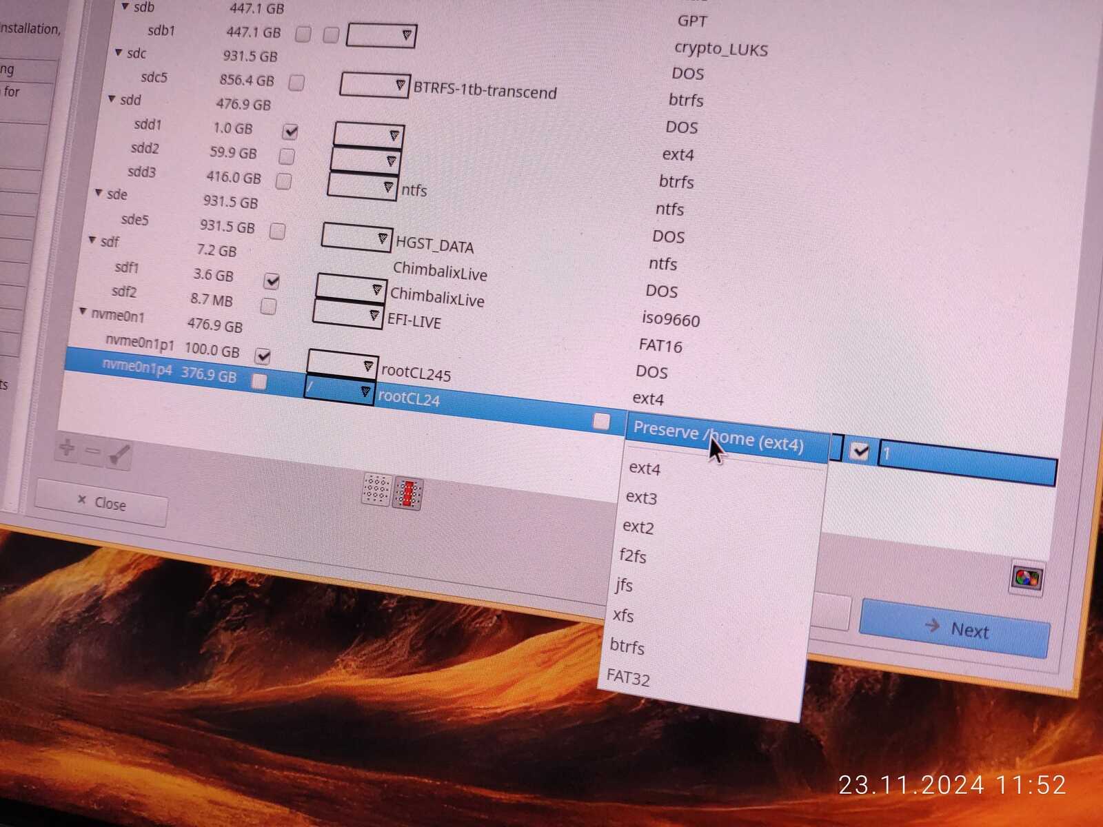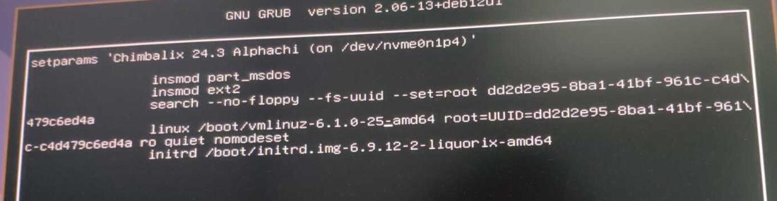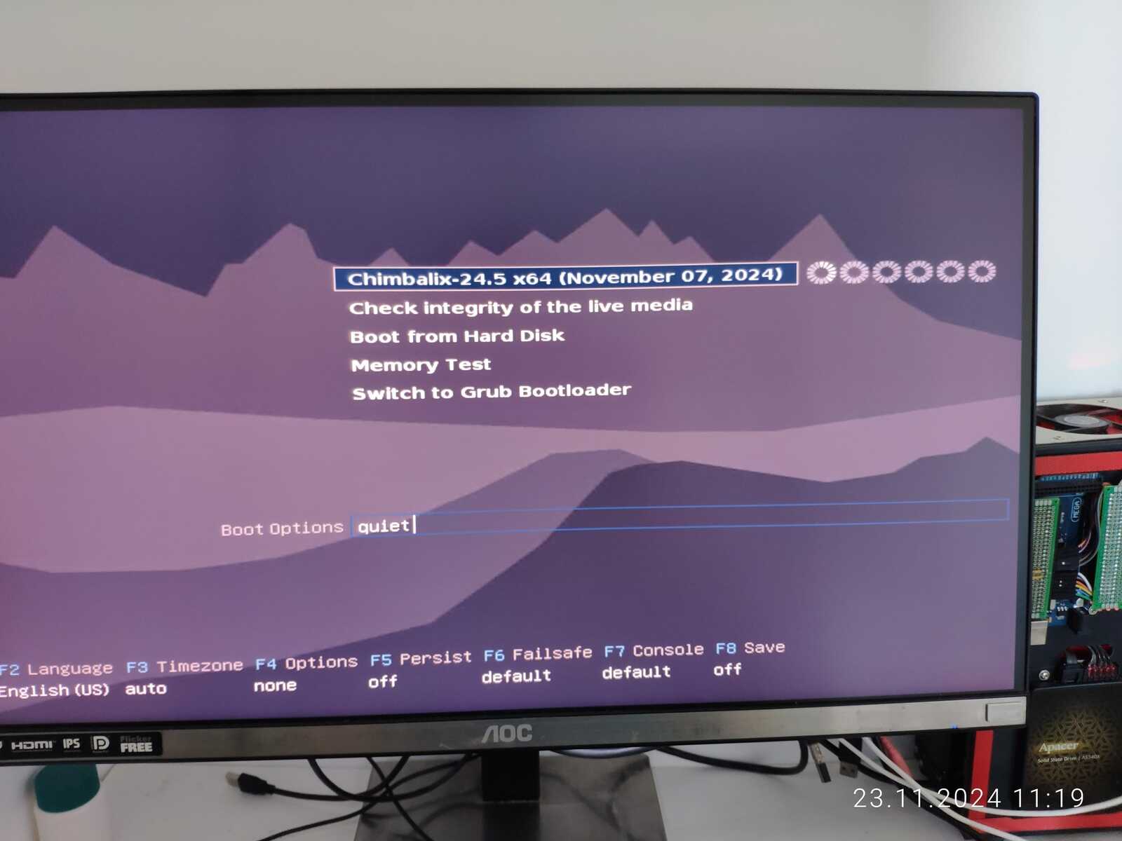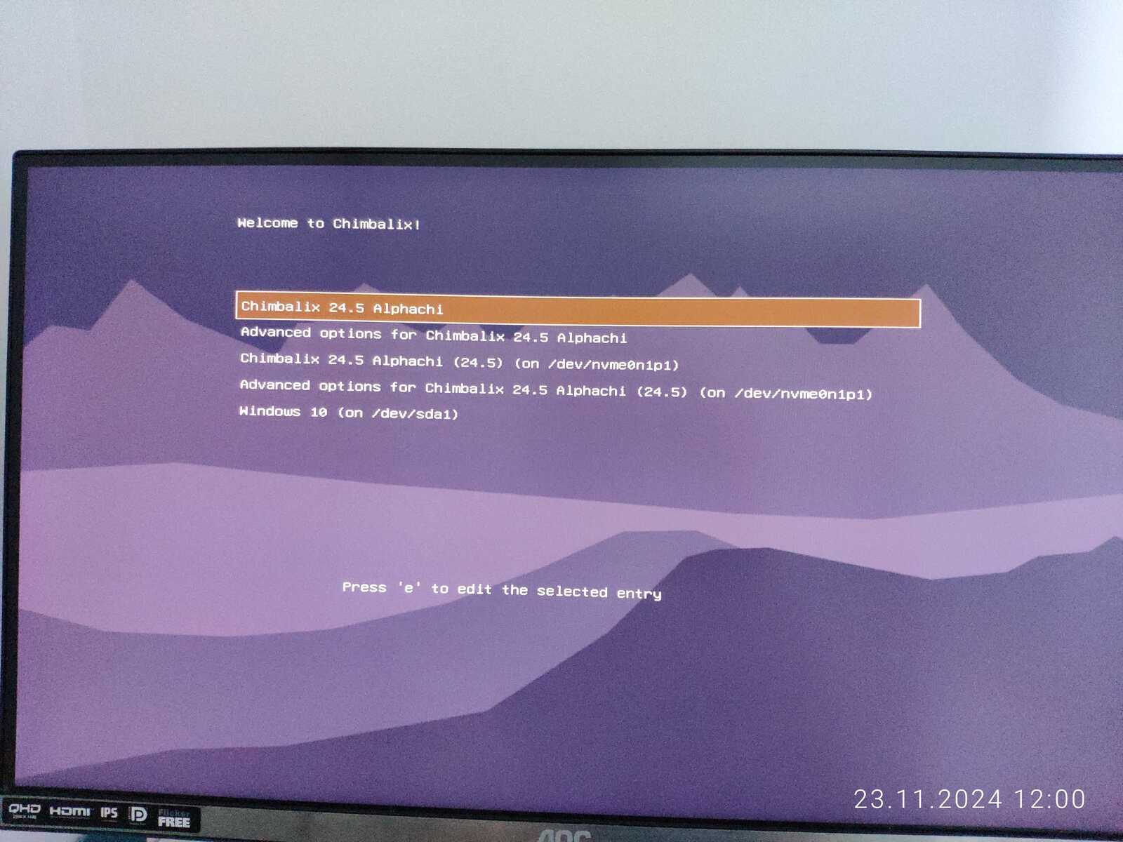 Но есть и примечательный момент, в загрузочном меню появились все установленные ядра Linux, вероятно это потому, что я на всякий случай переустановил уже старый и побитый экспериментами второстепенный линукс первого раздела NVMe SSD на чистый Chimbalix 24.5, просто чтобы был запасной вариант всегда. И тут я понял почему ранее не обновлялось меню загрузчика при установке других ядер в основной операционной системе...