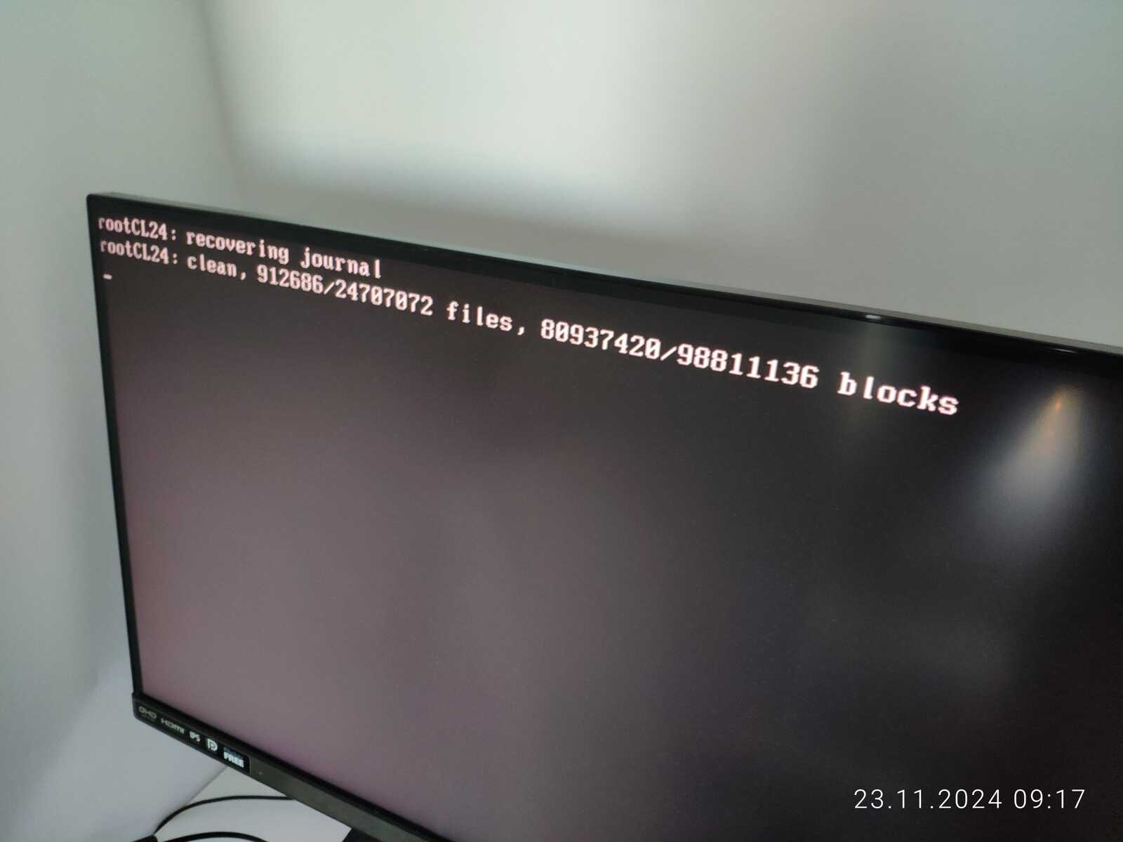 Однако утром обнаружилось, что компьютер хоть и проснулся от периферии, но вот Linux оказался мёртв, увы, даже индикатор клавиатуры не выставился: