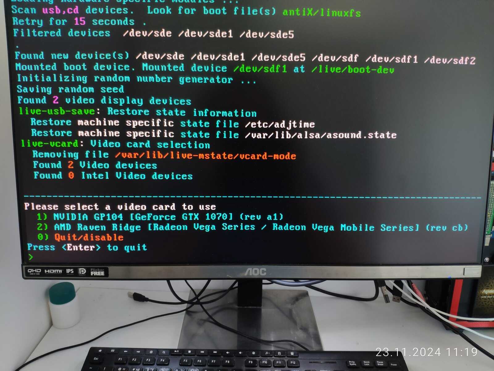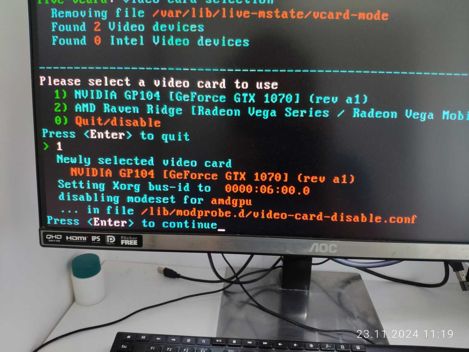 Загружаю флешку, система предлагает выбрать видеокарту, интересно, выбираю GTX 1070: