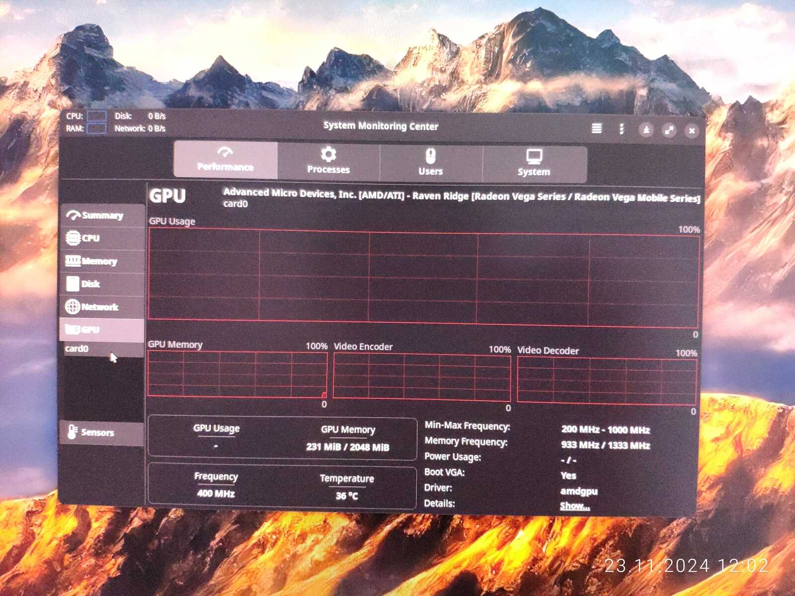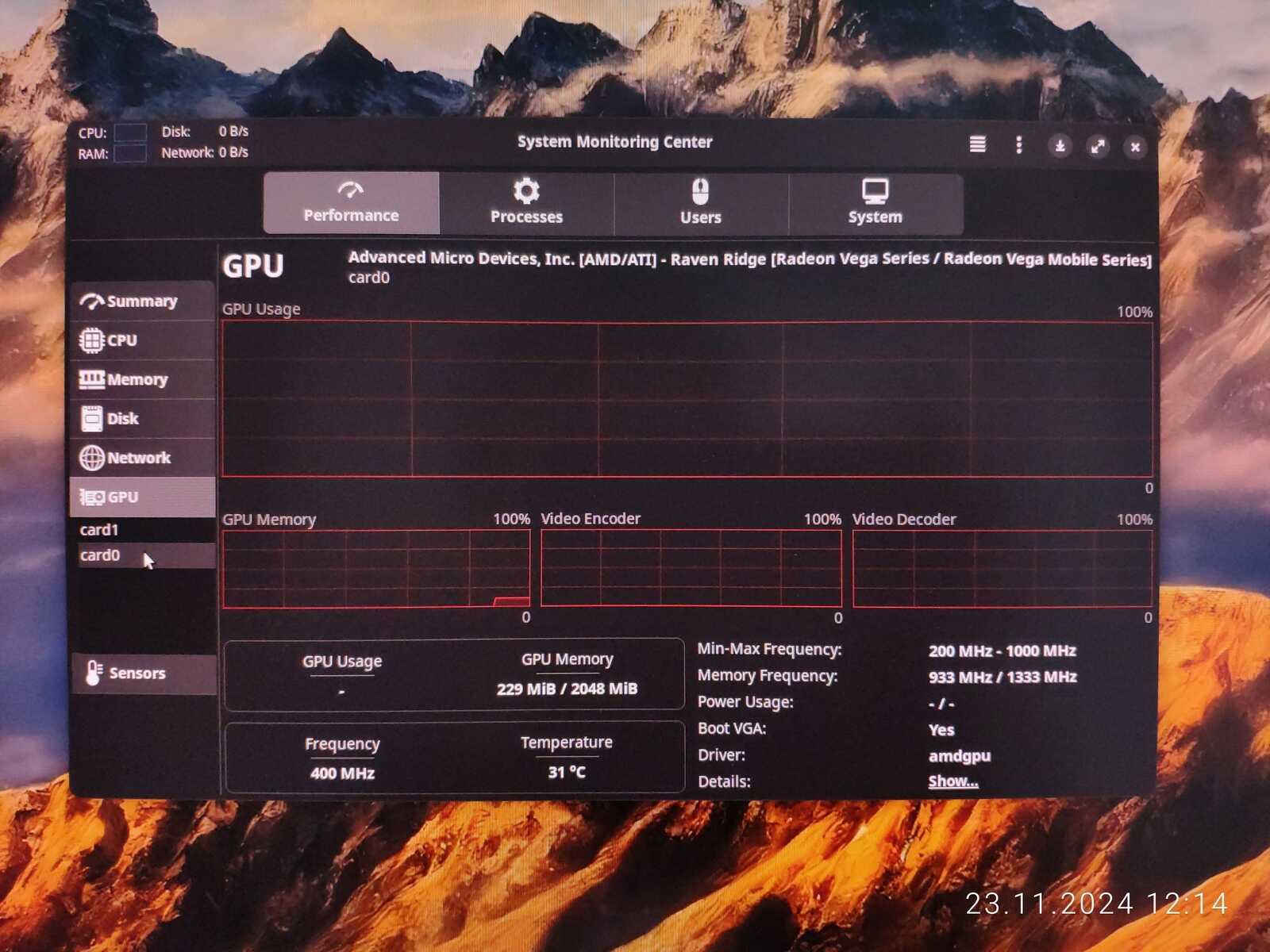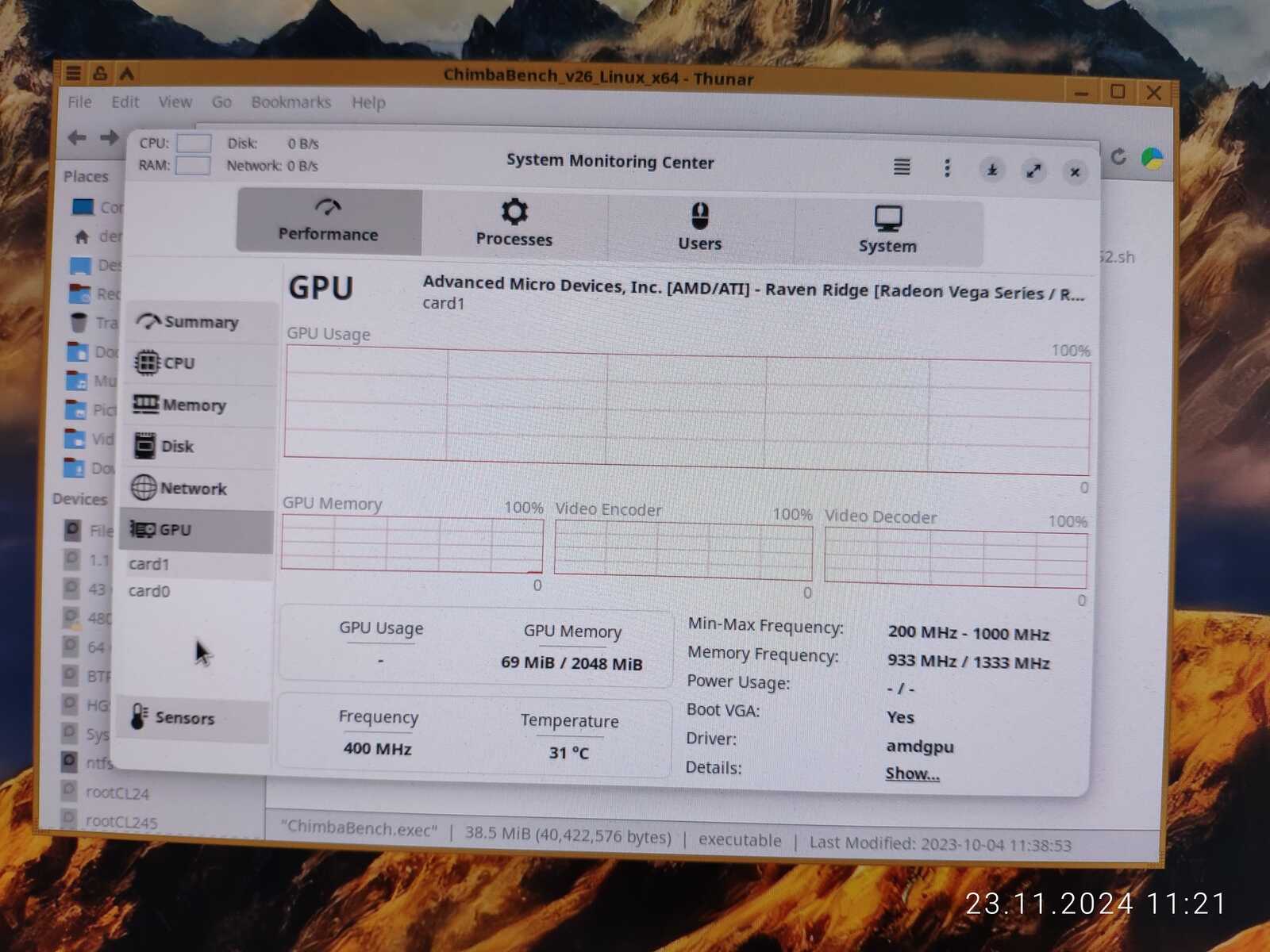 Хотя Vega 3 работает вроде нормально, только драйвер AMDGPU не показывает текущую нагрузку на ГП, этот датчик пустой... Пожалуй нужно установить нормальный драйвер для GTX 1070, вдруг что-то изменится: