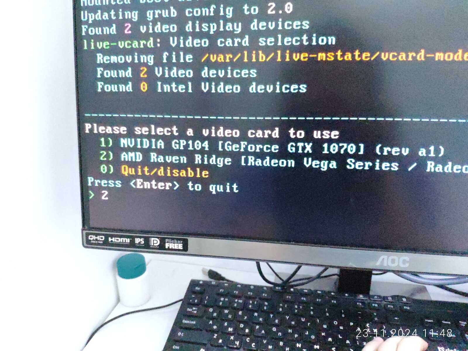На этот раз выбираю AMD Radeon, и оно наконец заработало, правда теперь видеокарта NVIDIA перестала работать с монитором, ох уж этот Linux...