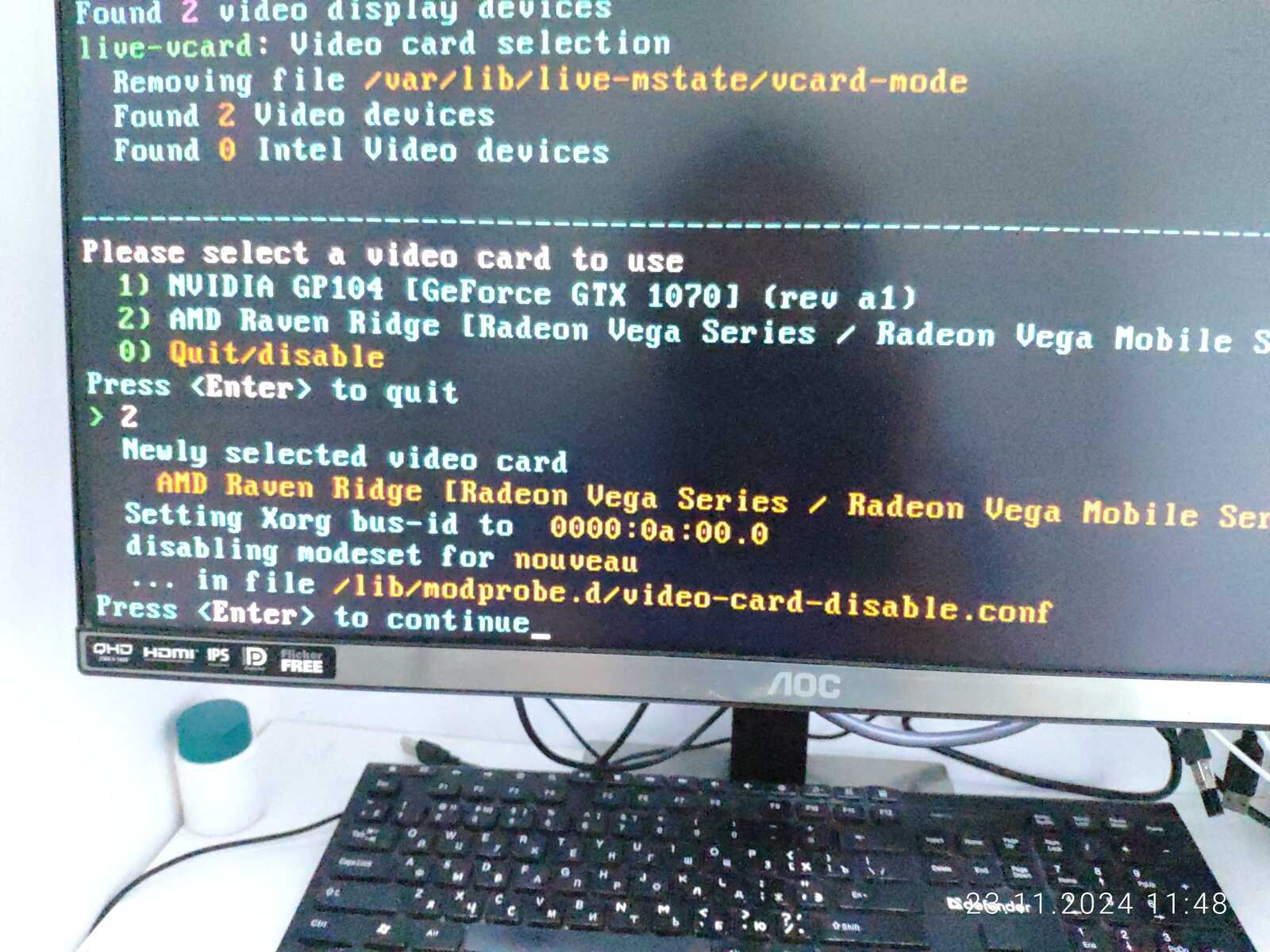Причём записанный в новомодном режиме "Full-featured" дистрибутив сохранил мой старый выбор видеокарты, и при перезагрузках всё равно выбирает GeForce, хотя по факту всё равно работает Vega, брр: