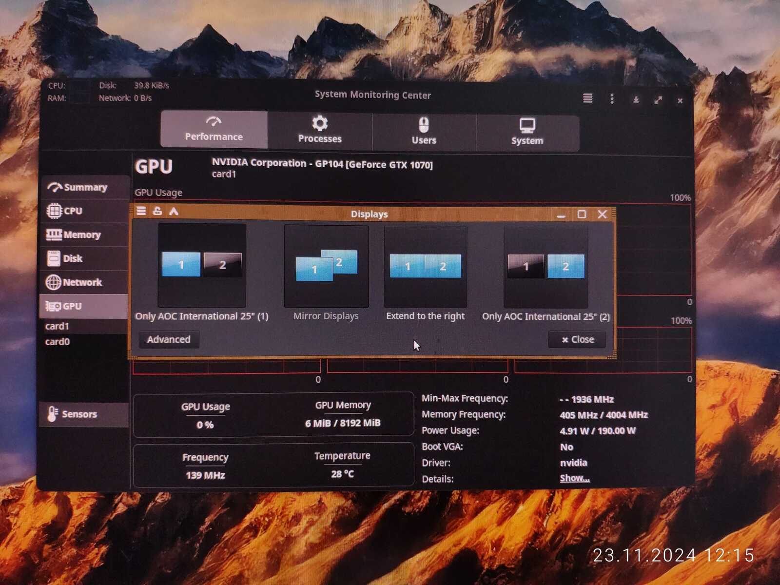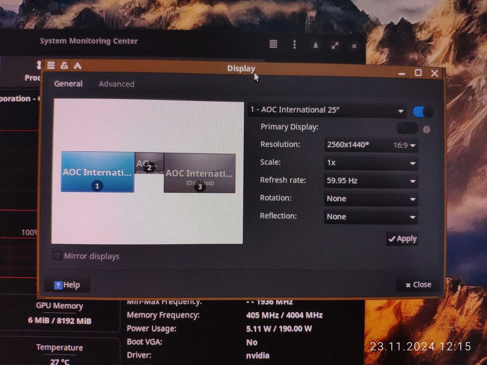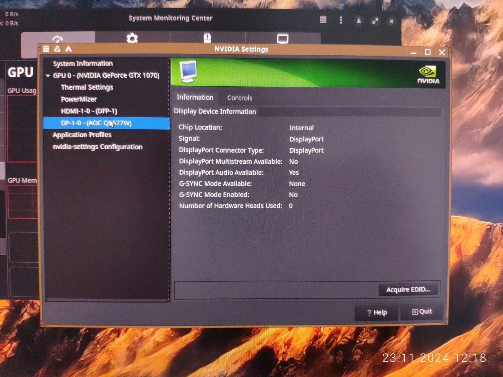 Но плохо здесь то, что монитор всё равно не работает с GTX 1070, а передёргивая провода - в линуксе появилось лишнее подключение, но всё равно монитор от дискретной графики никаким образом не хотел работать, что бы я ни делал, увы: