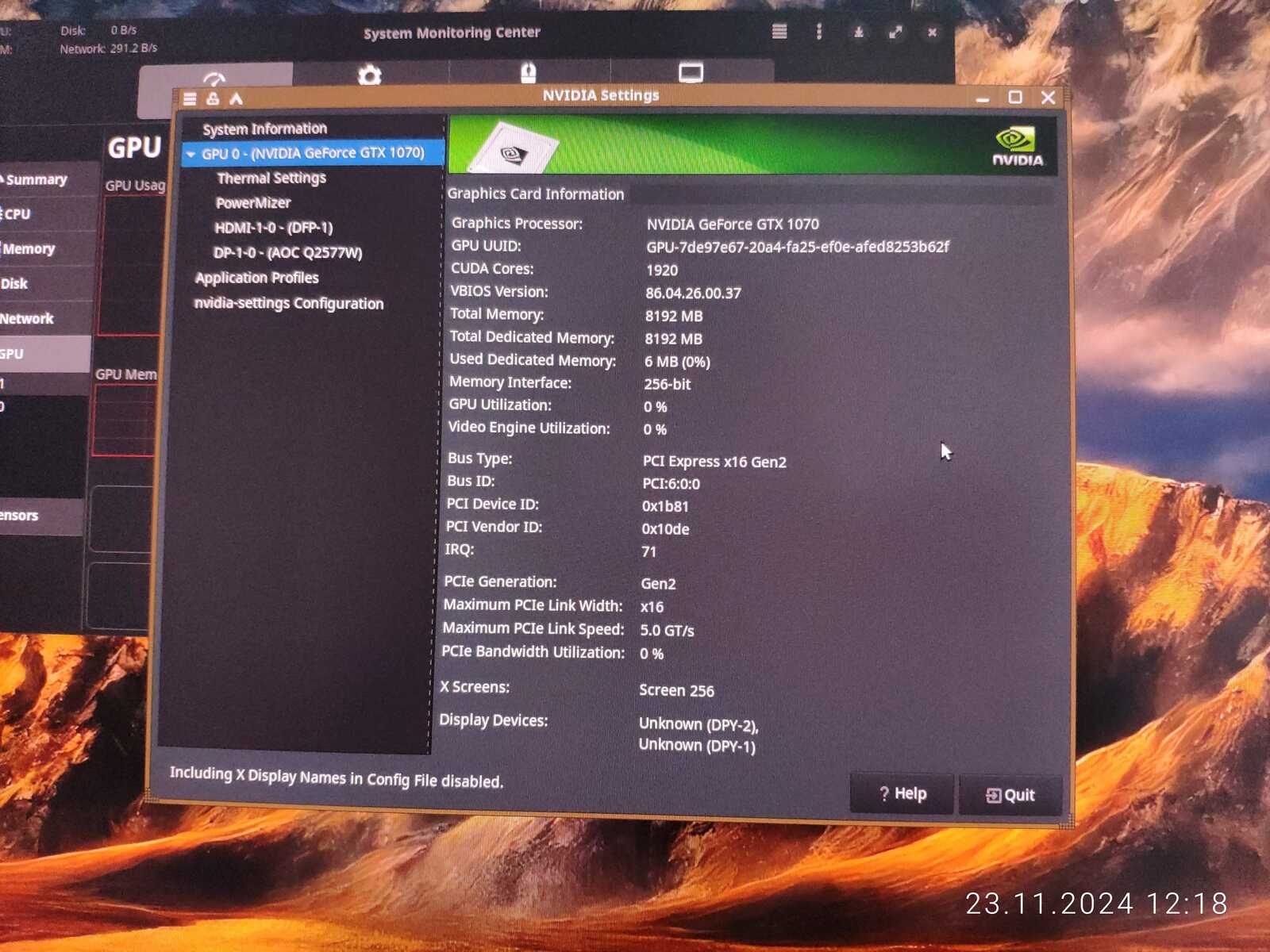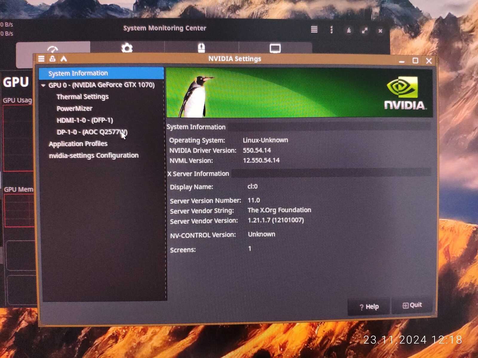 Ну не получается использовать GTX 1070 для вывода изображения, вообще никак, наверное нужно переустановить линукс, ведь в Windows всё работает как положено: