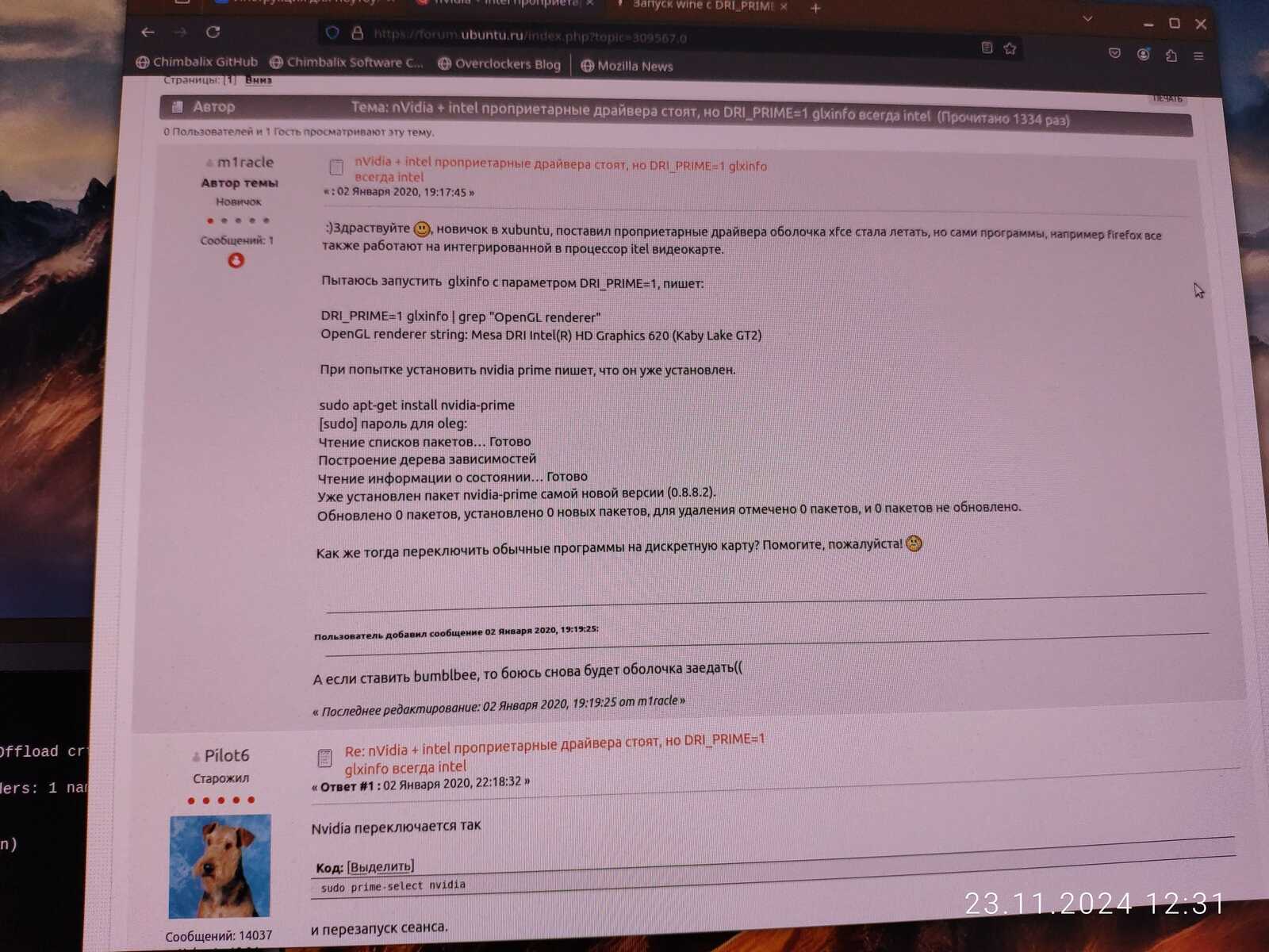 Делать нечего, подключаю интернет и начинаю искать решение проблемы двух видеокарт под линуксом, конечно же форумы завалены всевозможными проблемами линукса с двумя видеокартами, однако полноценного решения не нашлось: