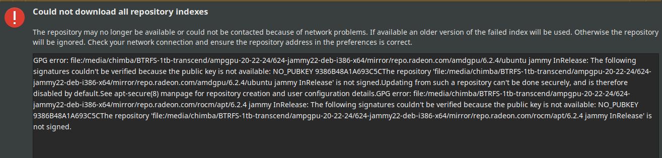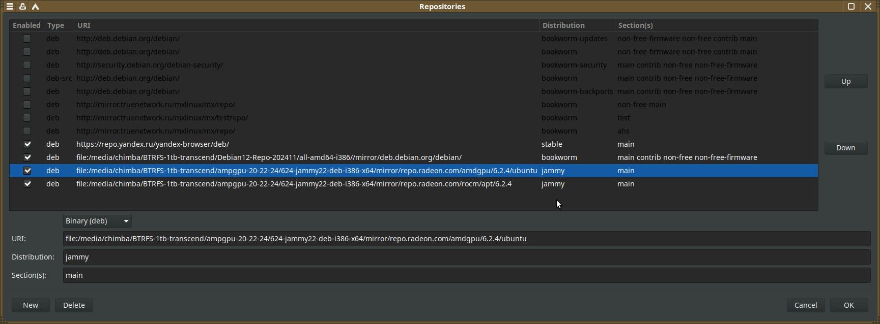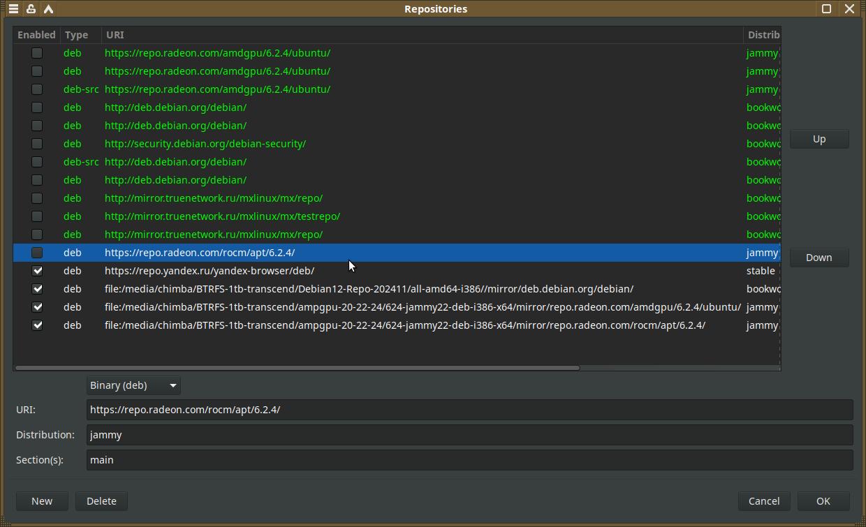 На всякий случай отключаю добавленные репозитории AMD в интернете, чтобы наверняка все использовалось только из локальных: