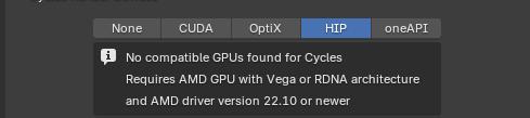 Ну и Blender все равно отказывается работать с видеокартой Radeon Vega, наверное у меня всё же неправильная Vega, похоже нужно подать Vega архитектуры RDNA, а не какую то GCN 2017 года рождения, или коротко о "потенциале" AMD мусора под названием Radeon: