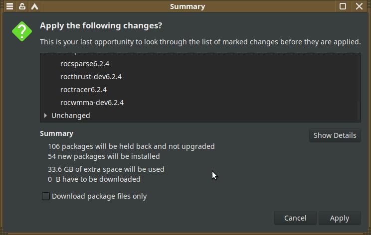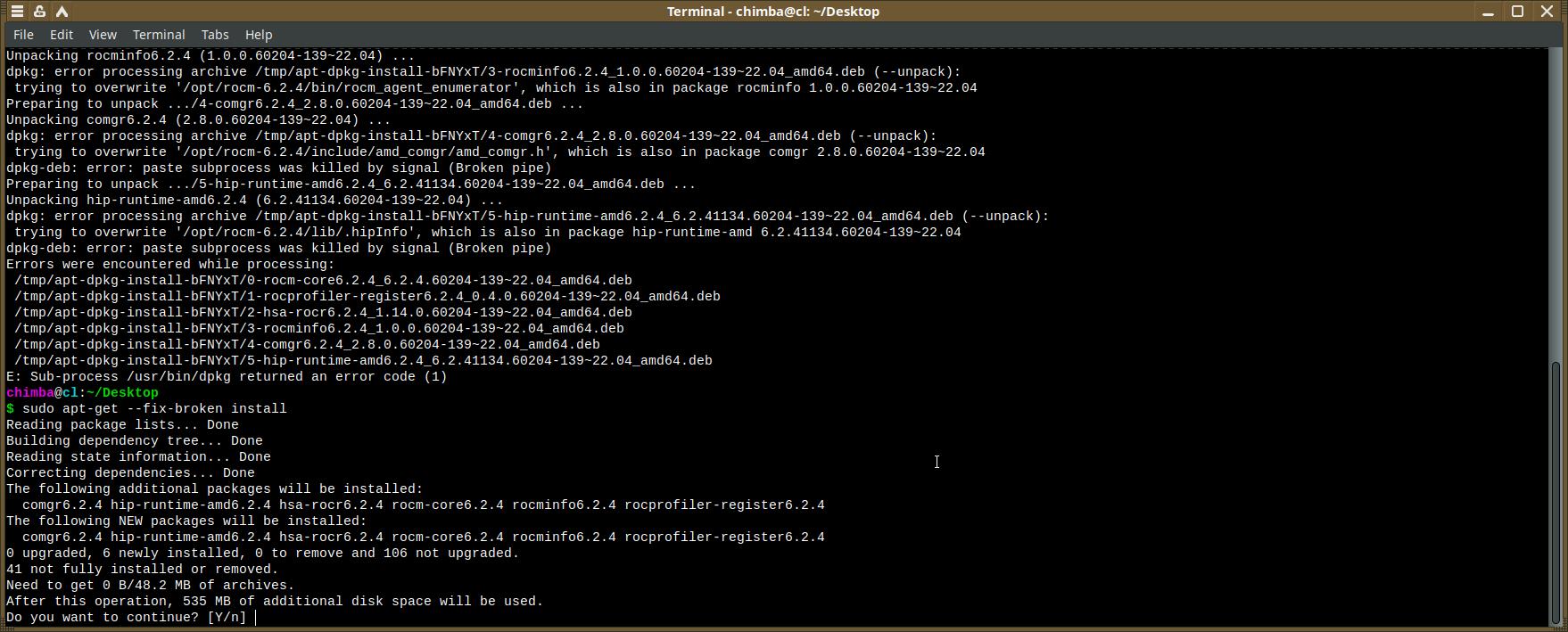 Меня только одно пугает, это требует 33.6 ГиБ места для установки всех необходимых для библиотек rocm зависимостей, брр, пусть только это мракобесие от AMD не заработает после установки: