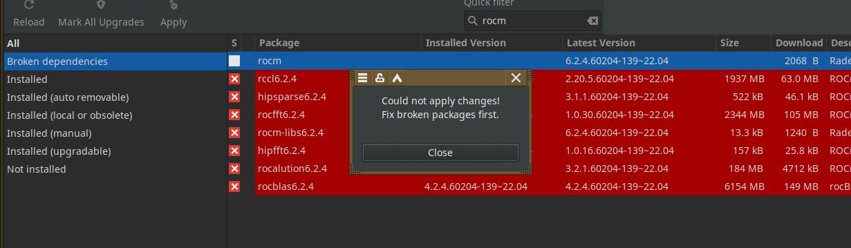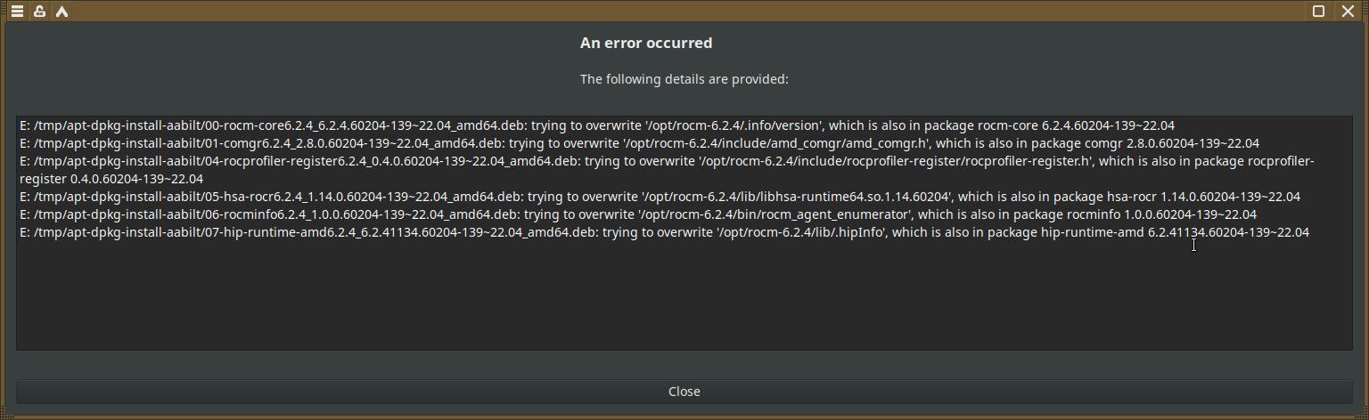 Ну да, конечно, пакеты из репозитория rocm начали конфликтовать между собой, что ещё было ожидать от производителя видеокарт выпускающего отвратительные драйверы:
