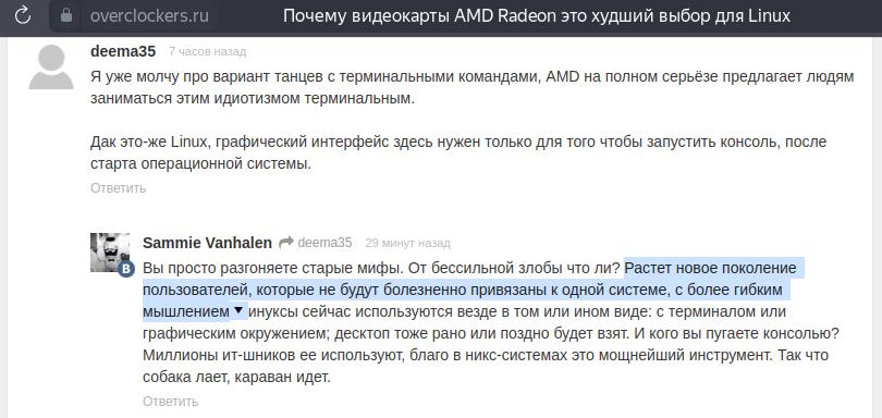 А теперь небольшой раздел про любителей защищать вечно кривые линуксы, даже выделю строку, на которую следует обратить особое внимание:
