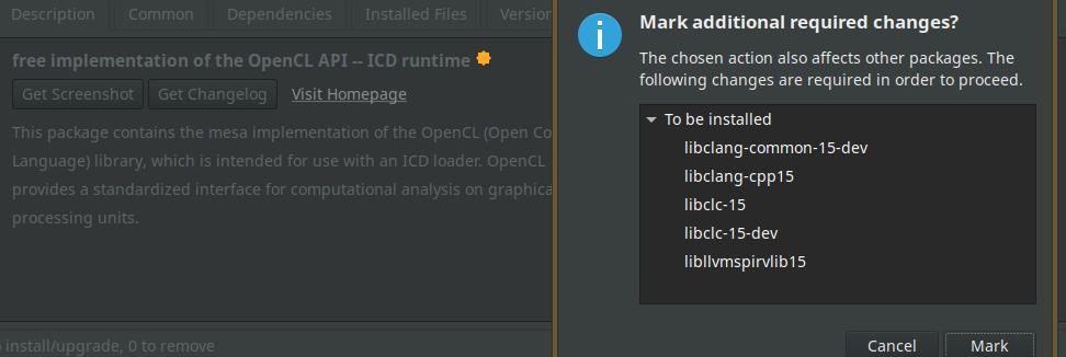 Только установка пакета mesa-opencl-icd сдвинула положение с мёртвой точки: