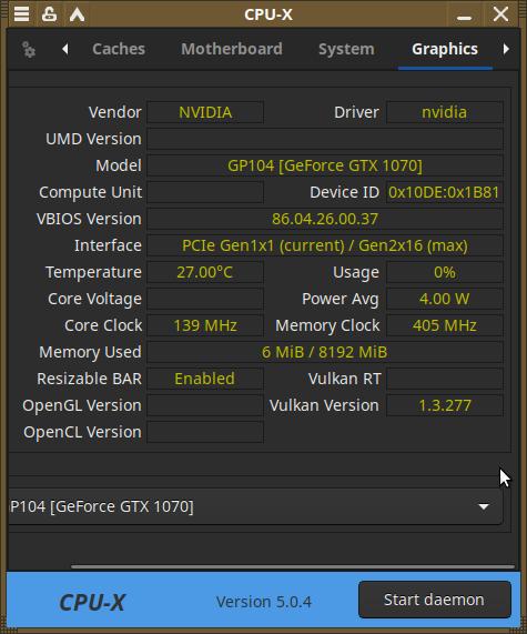 Кстати забавно, но CPU-X не может определить версии OpenCL у видеокарт, а ещё у GTX 1070 показывает что включен Resizable BAR: