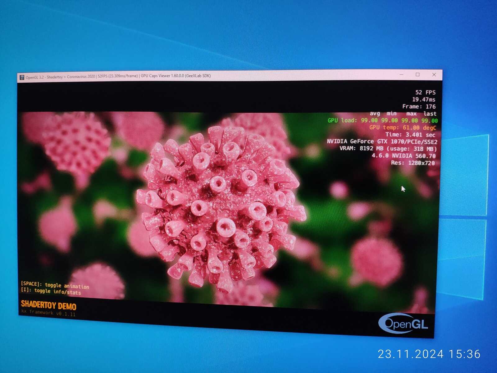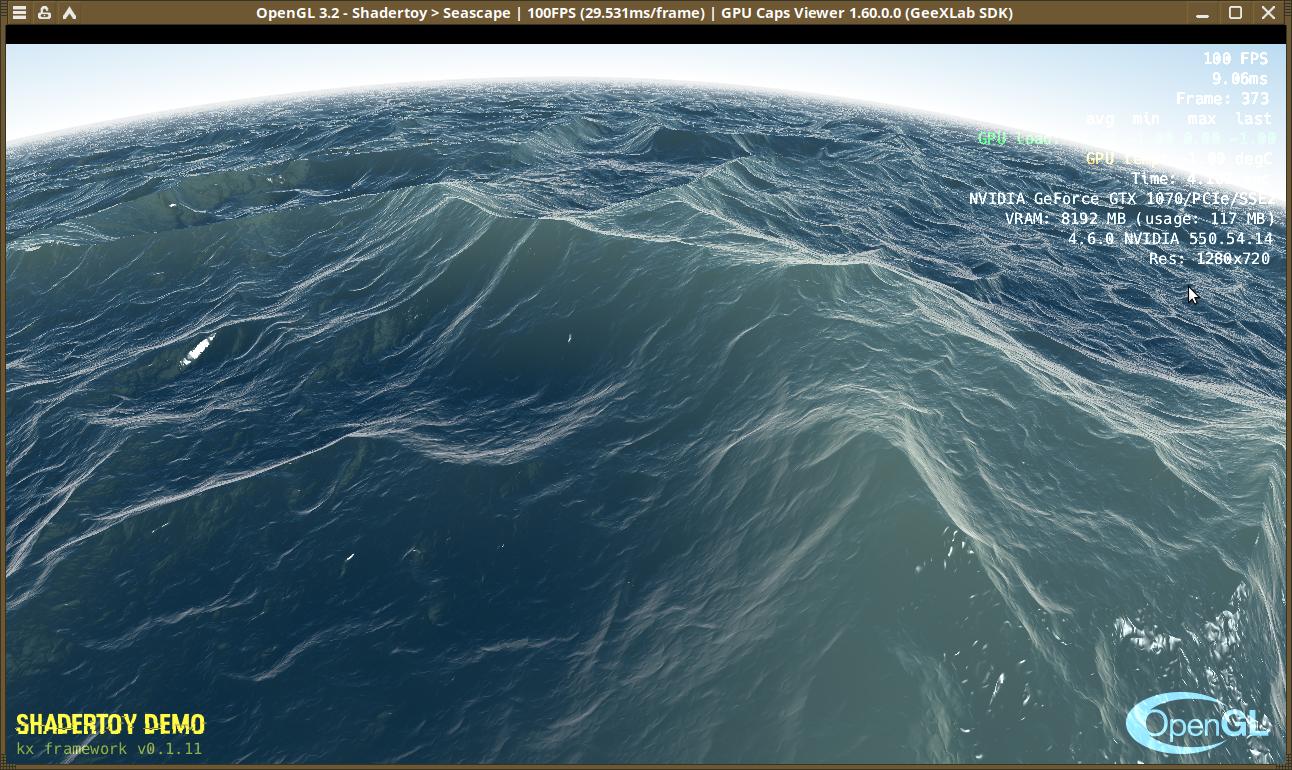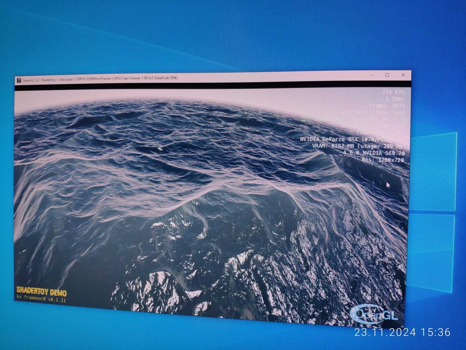 И действительно, GTX 1070 вывела картинку на монитор (DP), но проблема в том, что вся работа легла на Radeon, а она настолько плохо работает, что llvmpipe драйвер использующий ЦП был многократно быстрее, даже интерфейс тормозит, не говоря уже про использование OpenGL API...