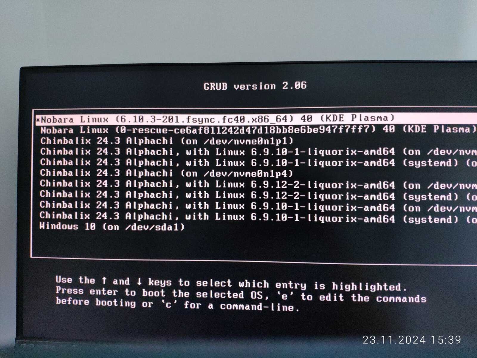 Теперь вернёмся к линуксу, но не простому, а к Nobara 40, просто чтобы у неадекватных линуксоидов не было шанса что-либо сказать против моего дистрибутива, мол, это всё мой Chimbalix кривой, но не другие линуксы.