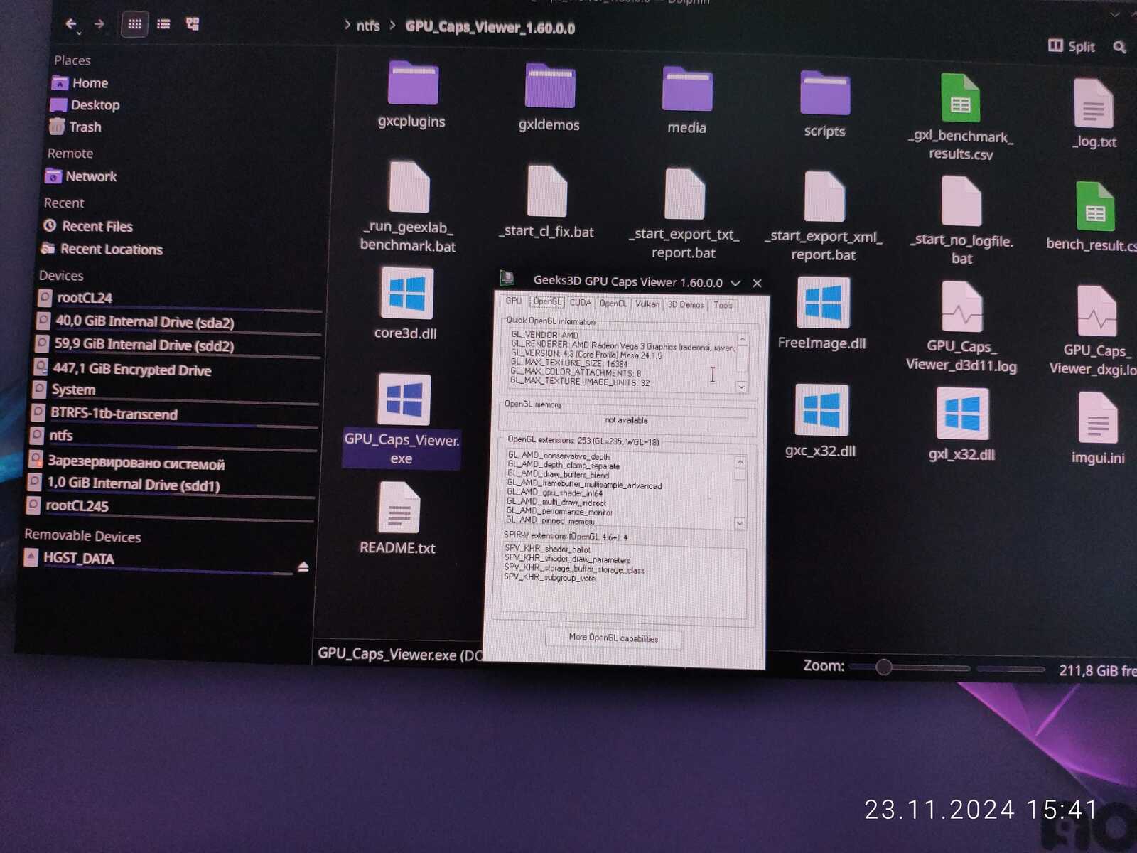 Запускаю GPU Caps Viewer 1.60, и вижу месиво из двух видеокарт, Vulkan API взят от GTX 1070, как и версия драйвера, OpenGL взят от Radeon Vega, OpenCL опять же от GTX 1070: