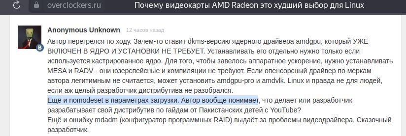 Столько мракобесия в среде Windows я не испытывал даже с худшими драйверами из худших, сколько испытал с AMD в среде Linux всего за пару дней...