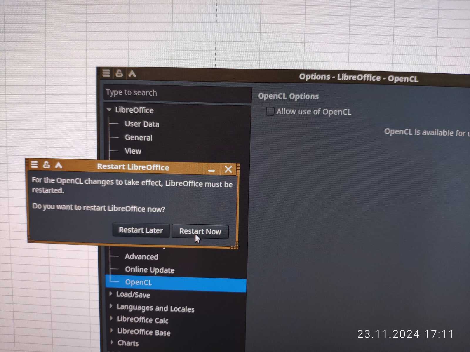 Однако я столкнулся с неожиданной проблемой, да, при запуске LibreOffice у меня зависла система намертво, раза 3 или 4 монитор отключался и включался сам, но в итоге пришлось перезагружать компьютер принудительно: