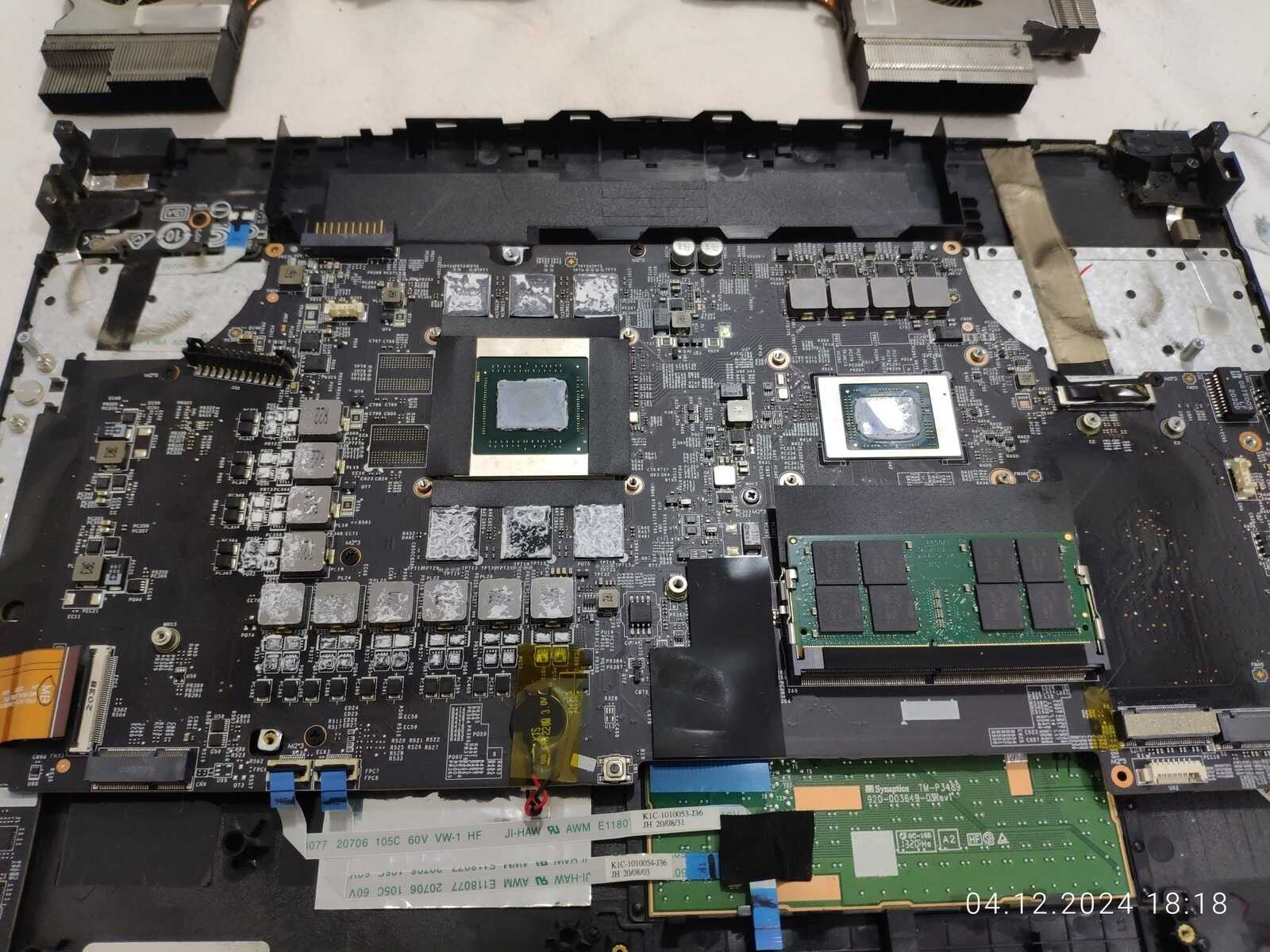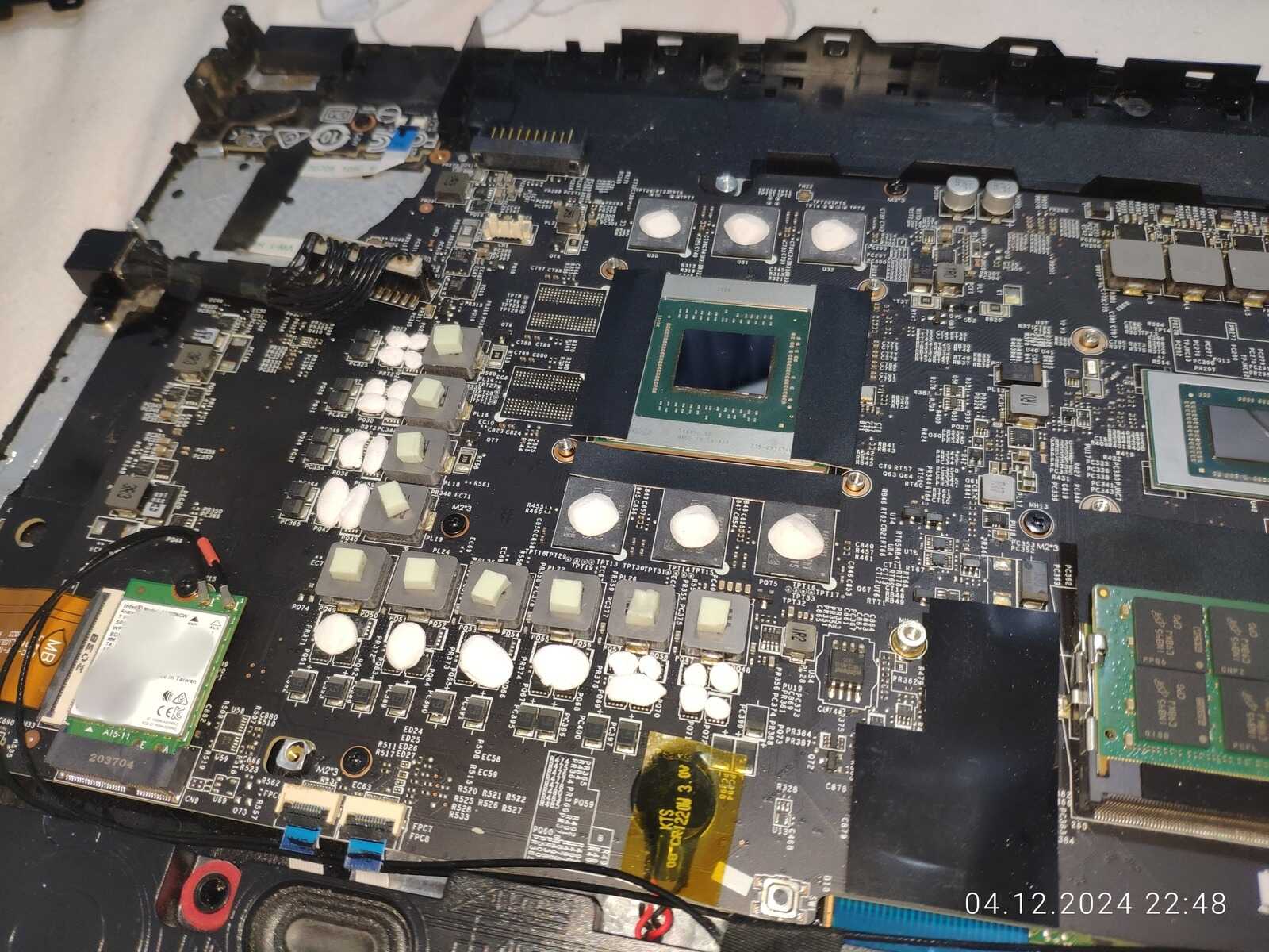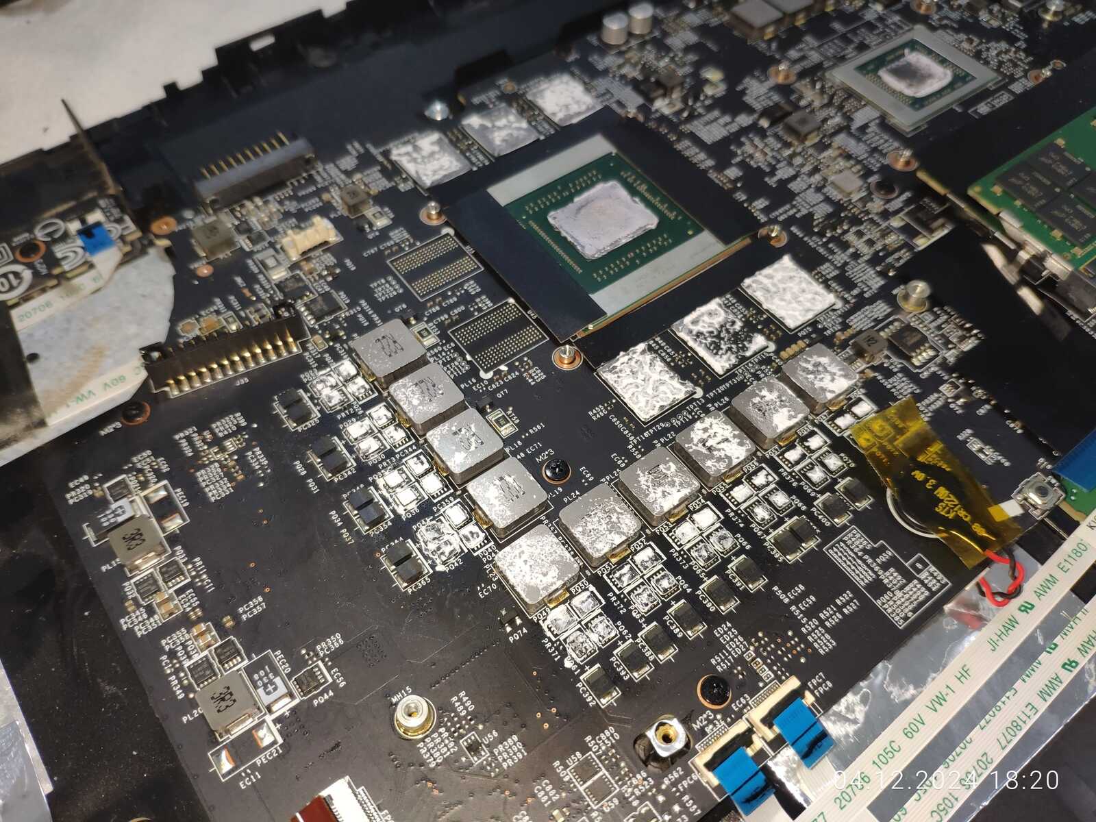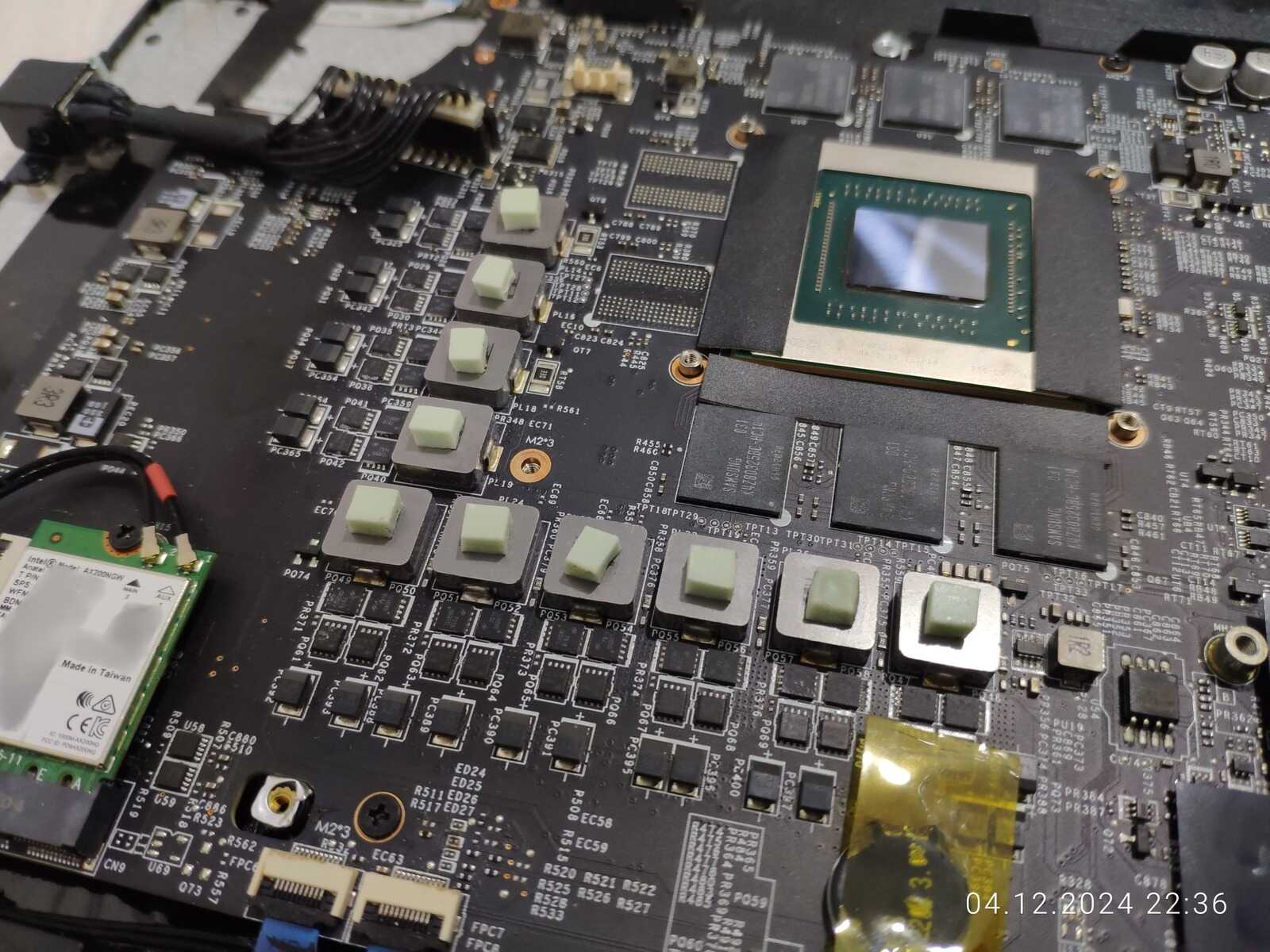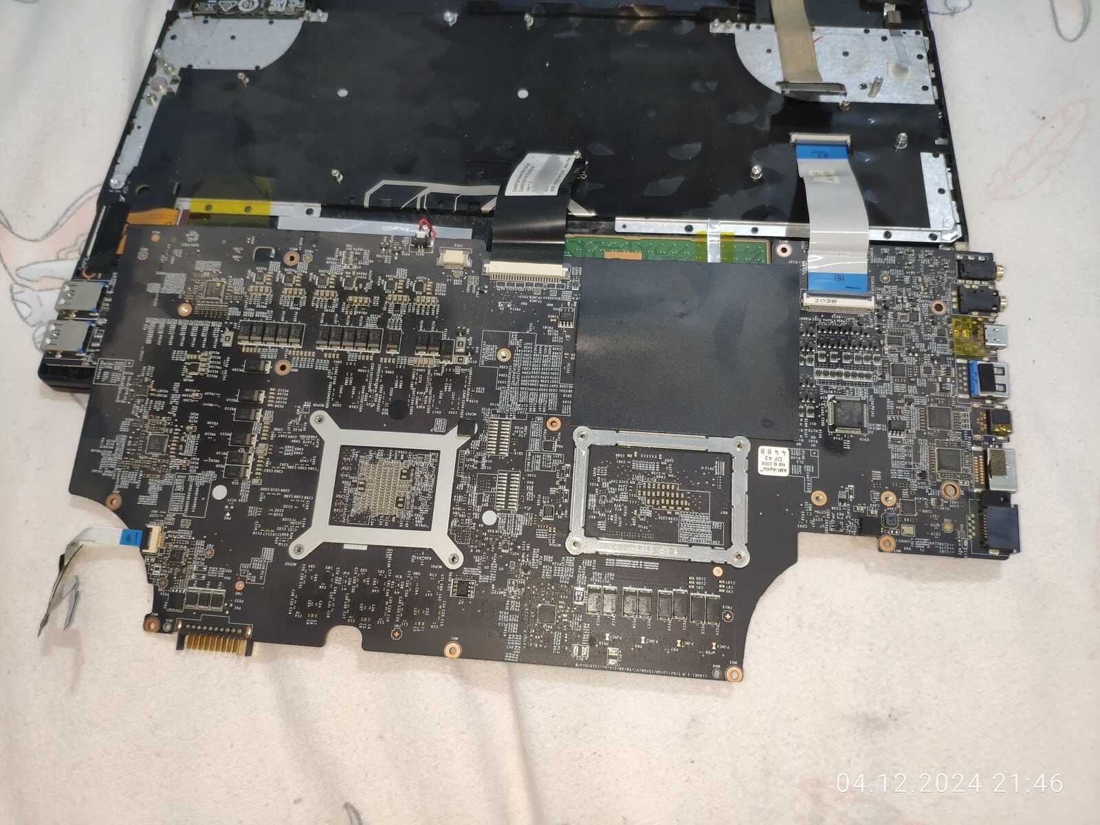 Наконец системная плата снята, да, если вдруг нужно заменить клавиатуру в MSI Alpha 15, то для этого обязательно придётся снимать системную плату, ведь держится она на модуле клавиатуры...