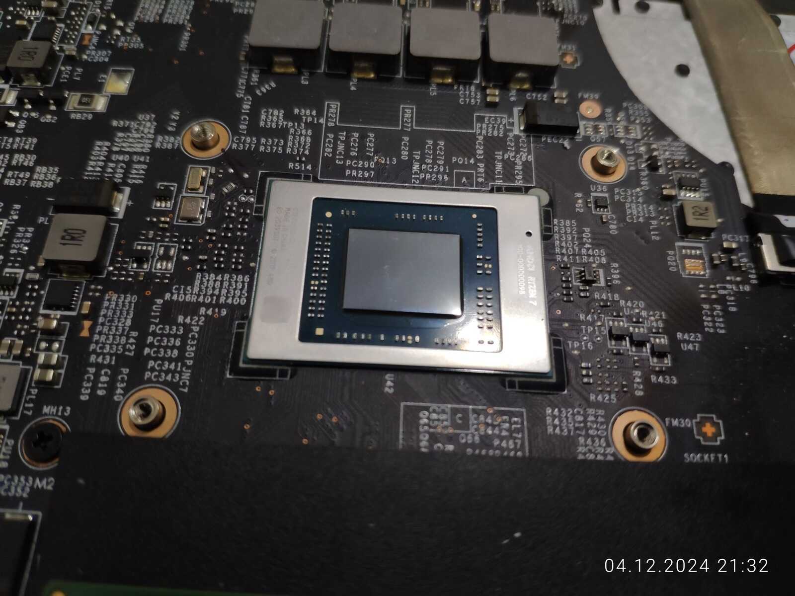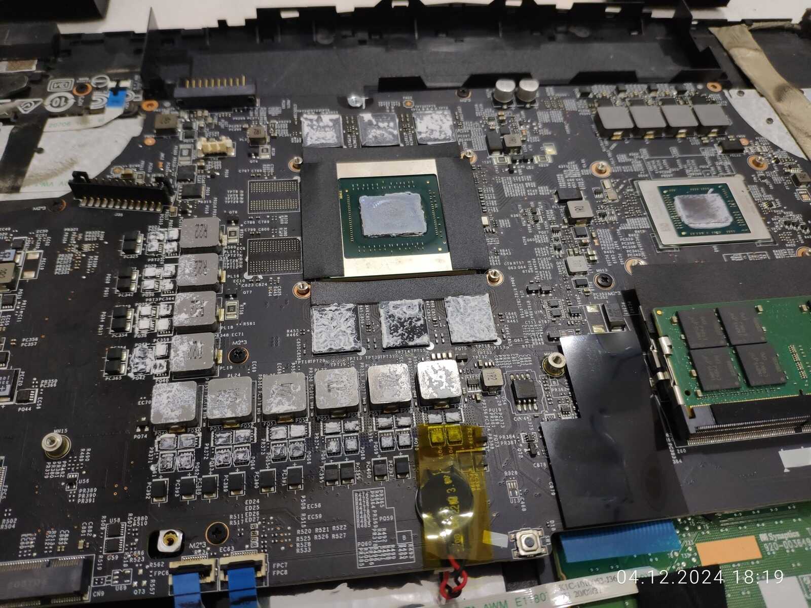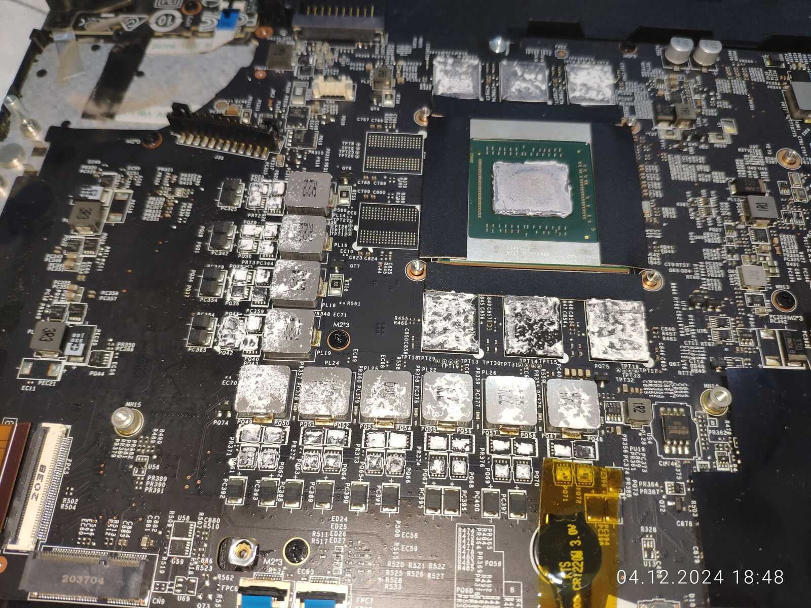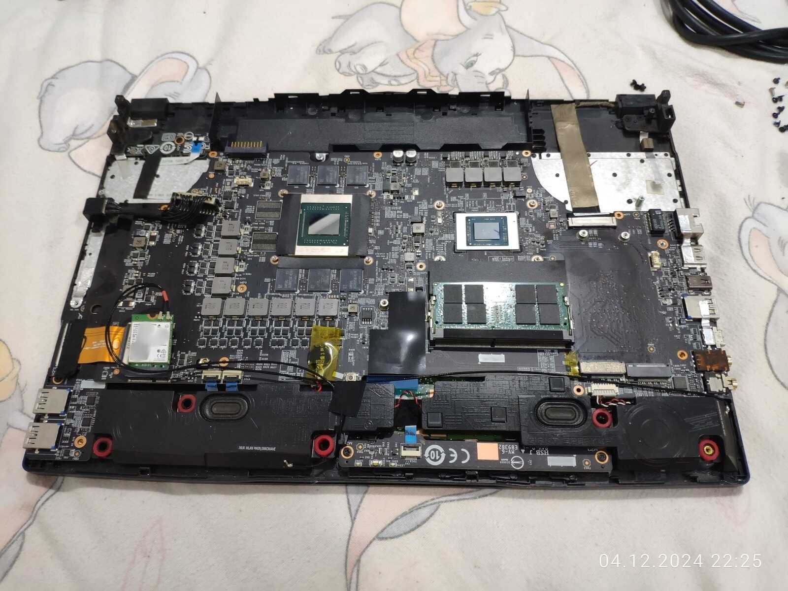 Наконец системная плата снята, да, если вдруг нужно заменить клавиатуру в MSI Alpha 15, то для этого обязательно придётся снимать системную плату, ведь держится она на модуле клавиатуры...
