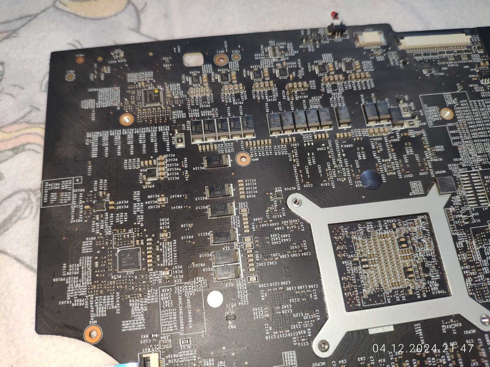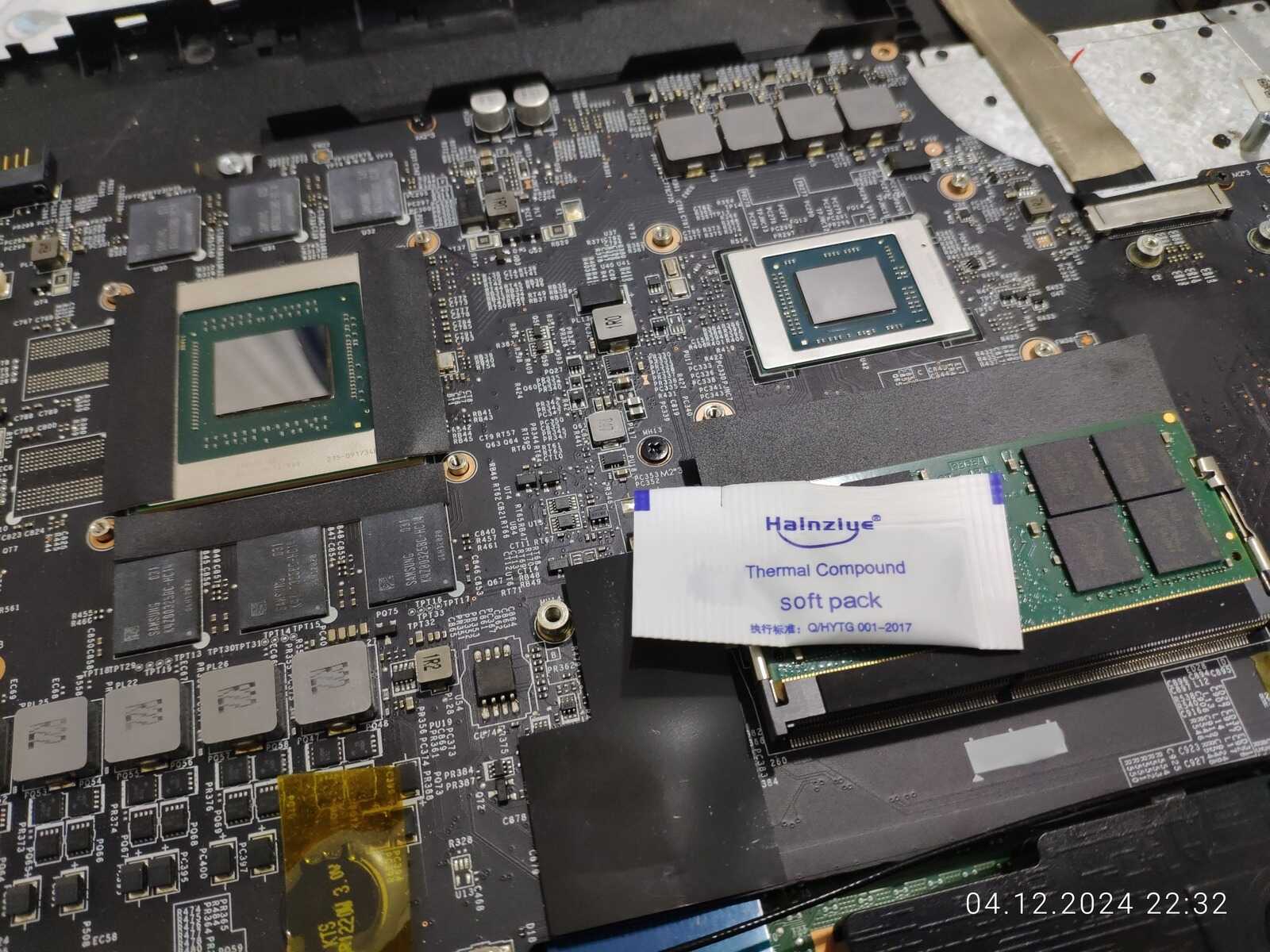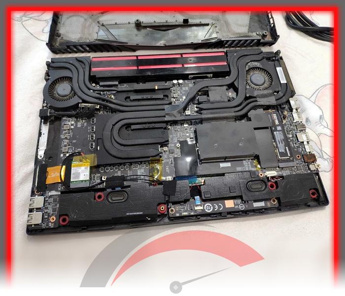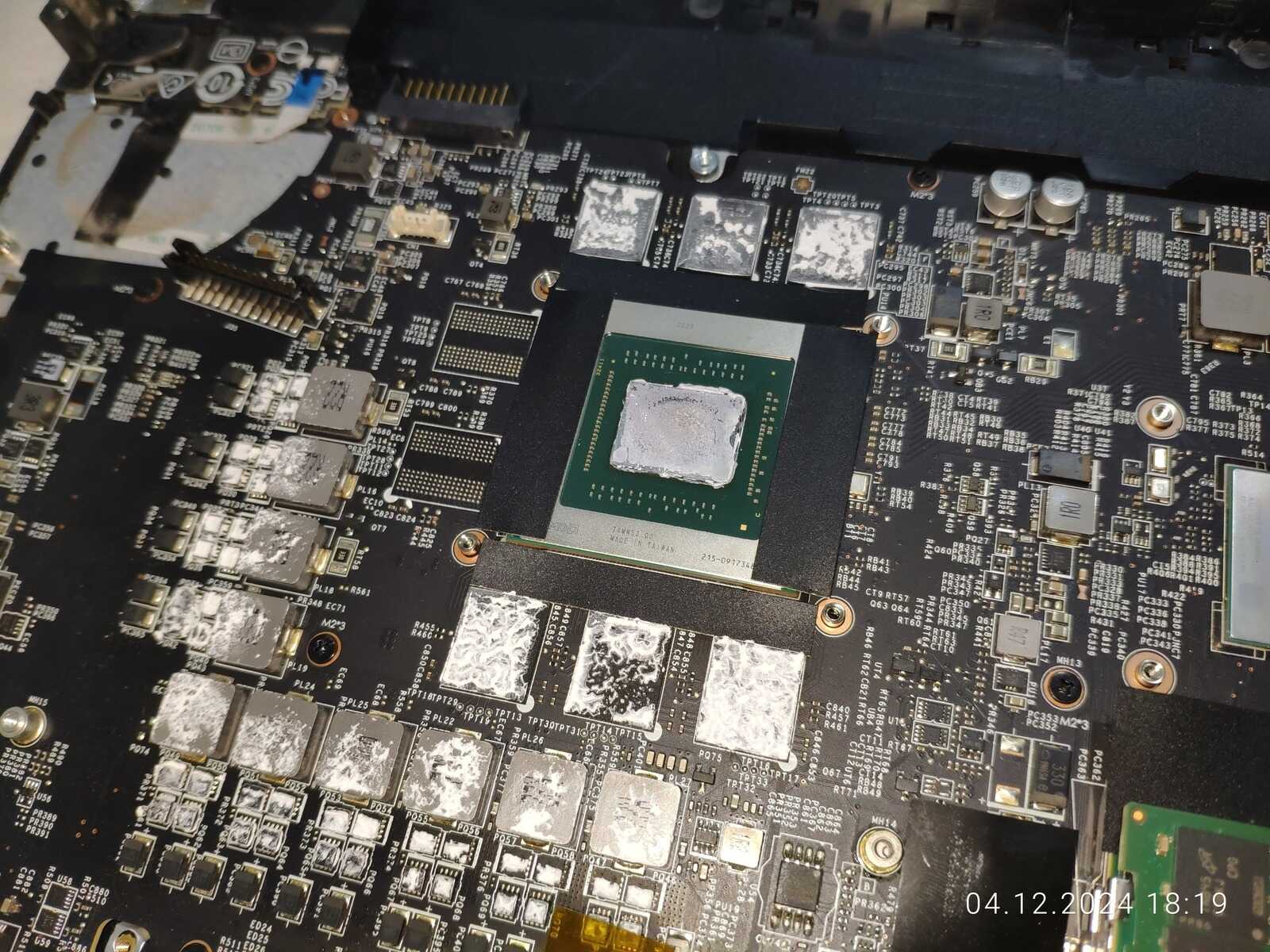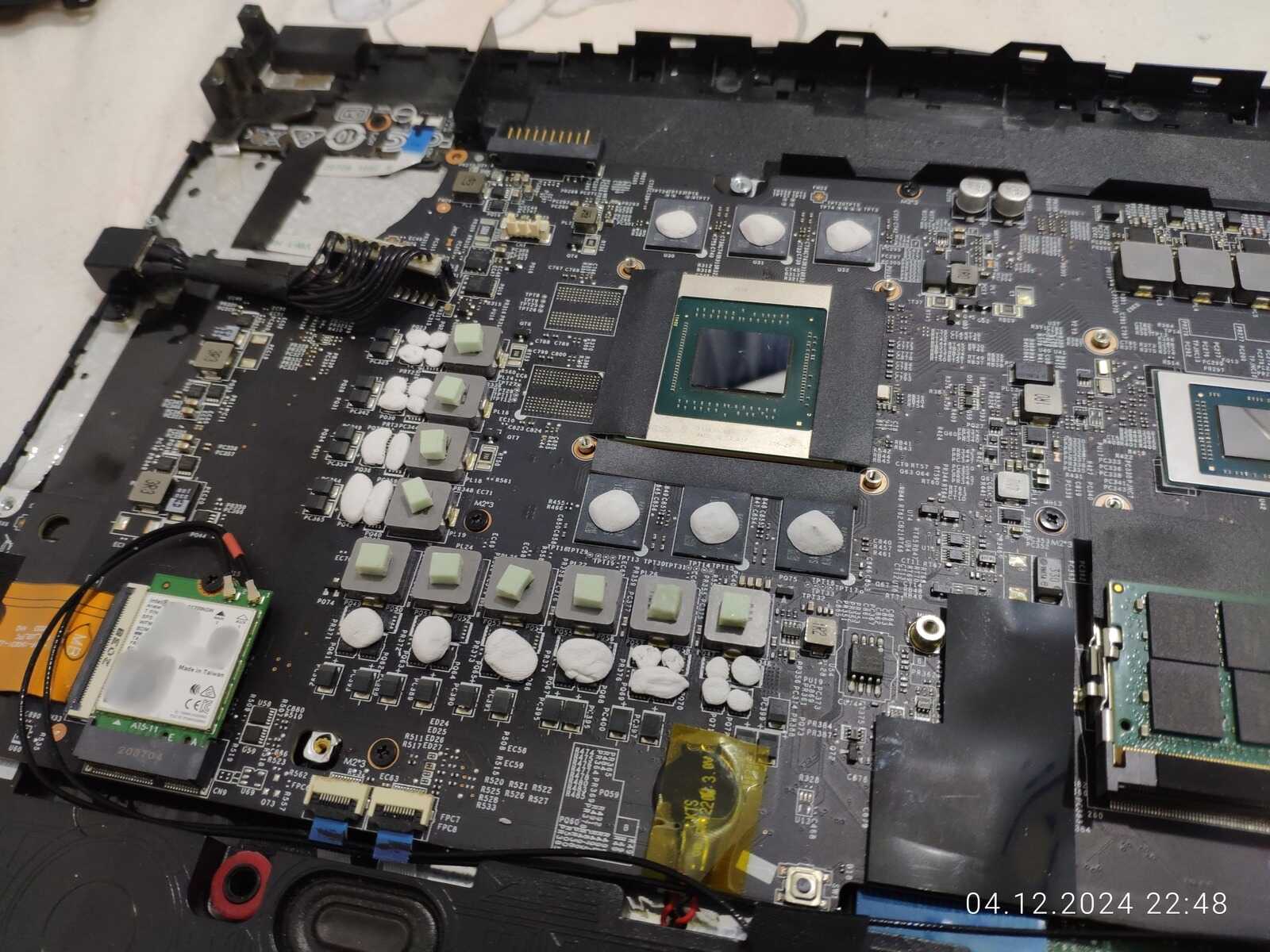 Наконец системная плата снята, да, если вдруг нужно заменить клавиатуру в MSI Alpha 15, то для этого обязательно придётся снимать системную плату, ведь держится она на модуле клавиатуры...