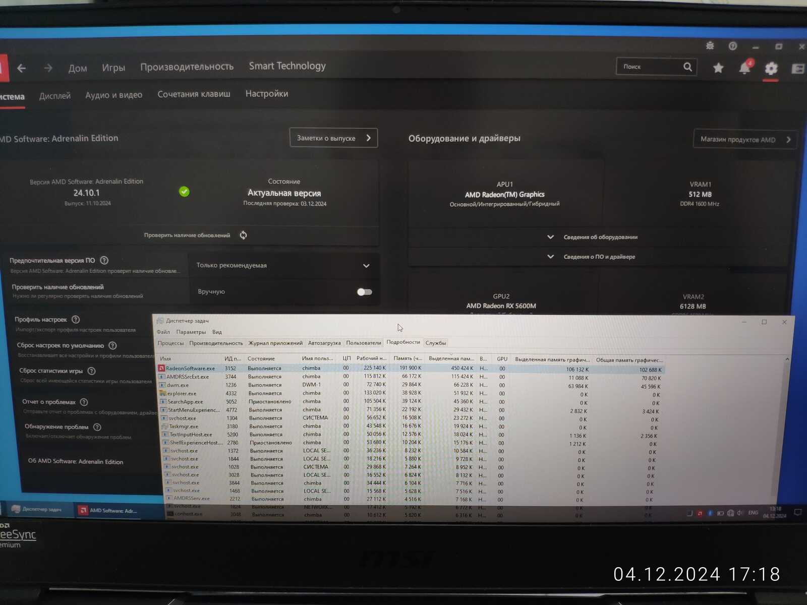 И да, с новым ноутбуком всё работает как положено, были конечно вопросы к технологии VMD от Intel, вообще непонятно, зачем она в ноутбуке, но суть в том, что новый Asus TUF F17 наконец позволяет нормально работать, а так же играть в игры, некоторые из которых, даже не запускались с Radeon RX 5600M...