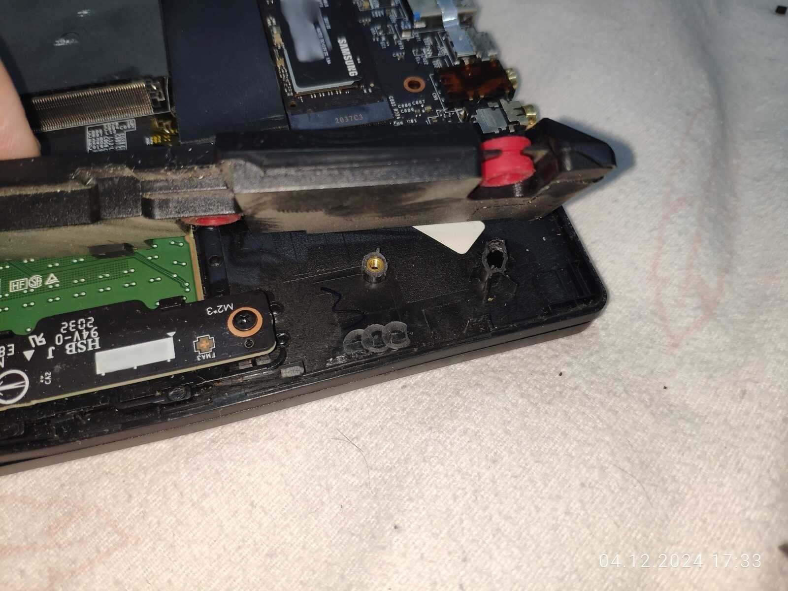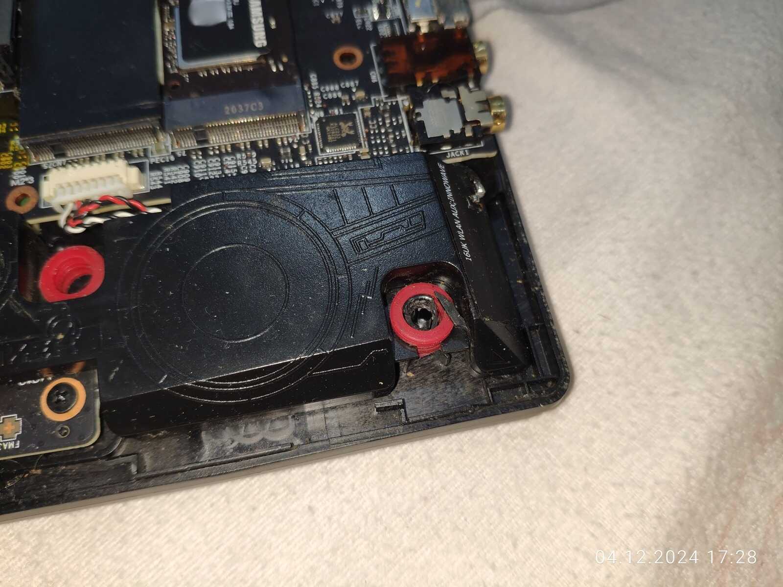 Продолжаю собирать куски корпуса и латунные втулки по всему ноутбуку, такое ощущение, что это не ноутбук за 1600$, а какая-то дешёвая китайская игрушка за 50 центов, такое же качество пластика.