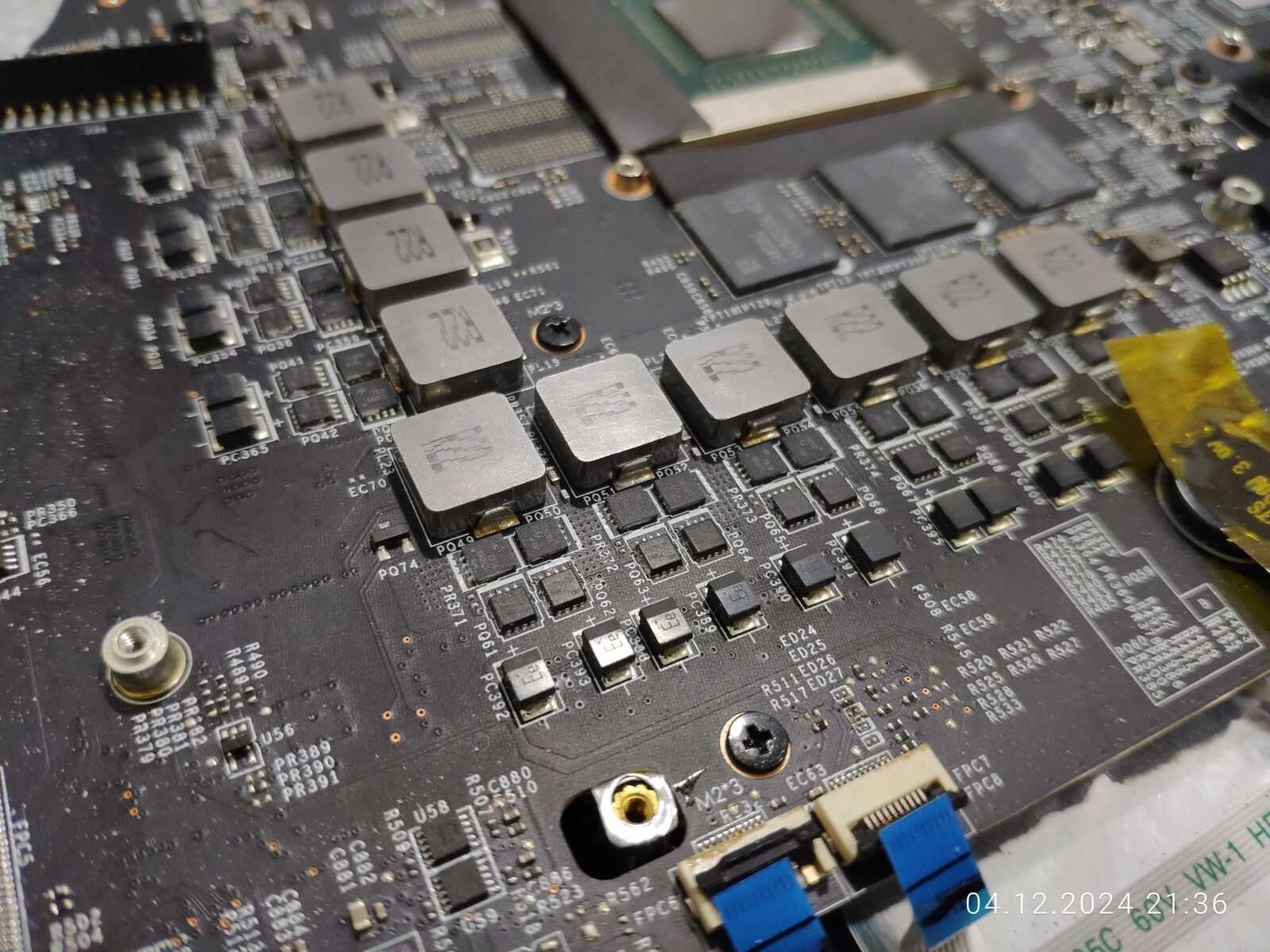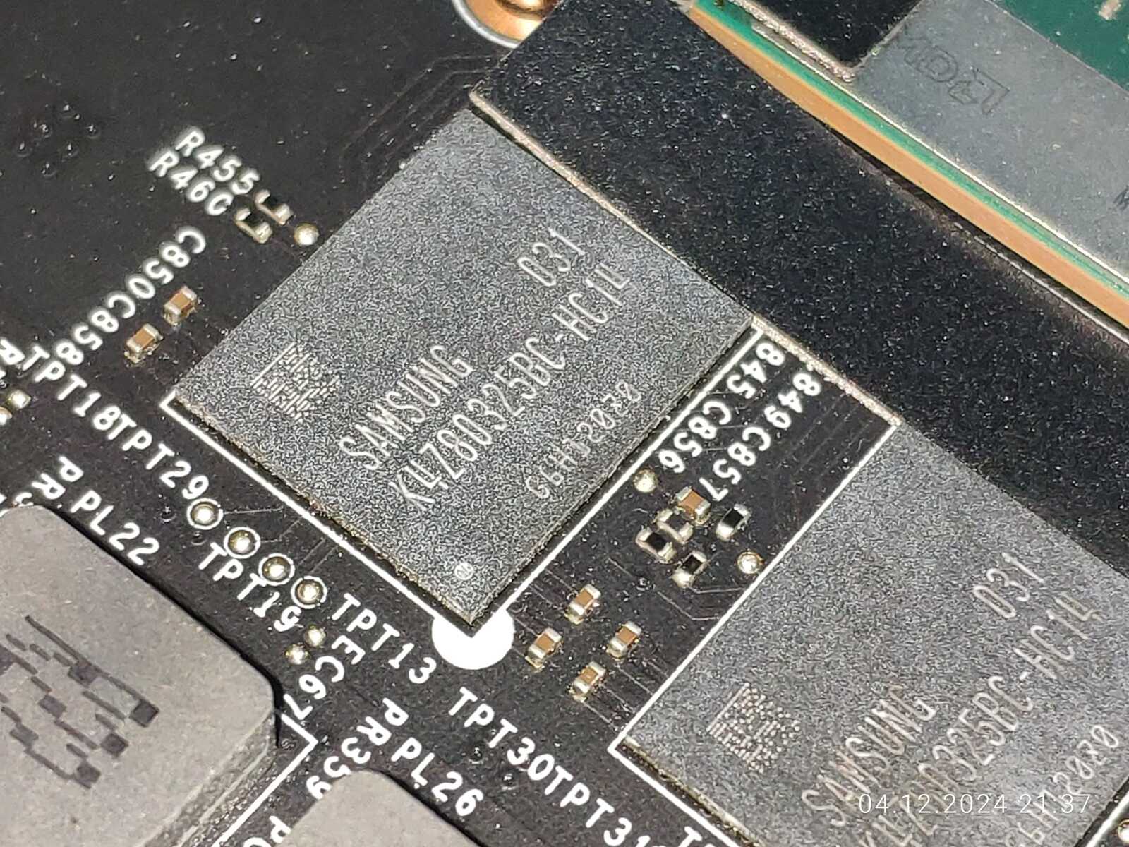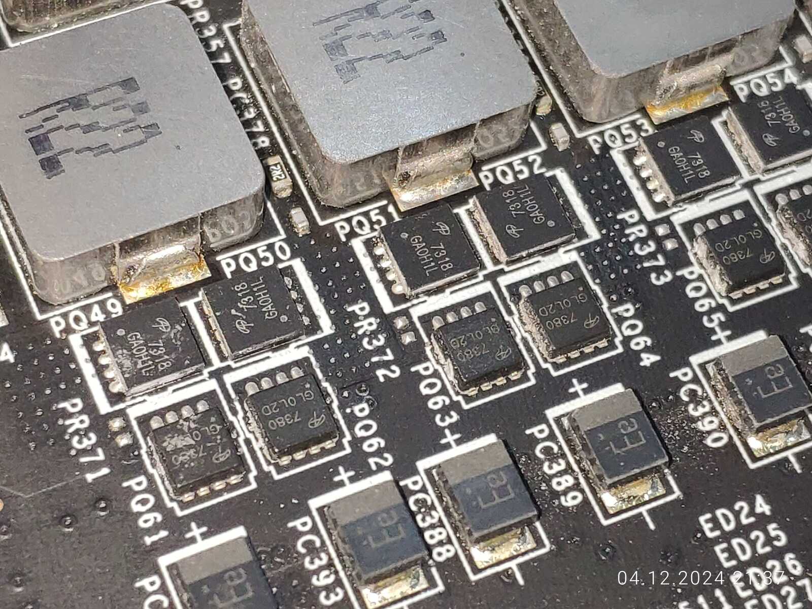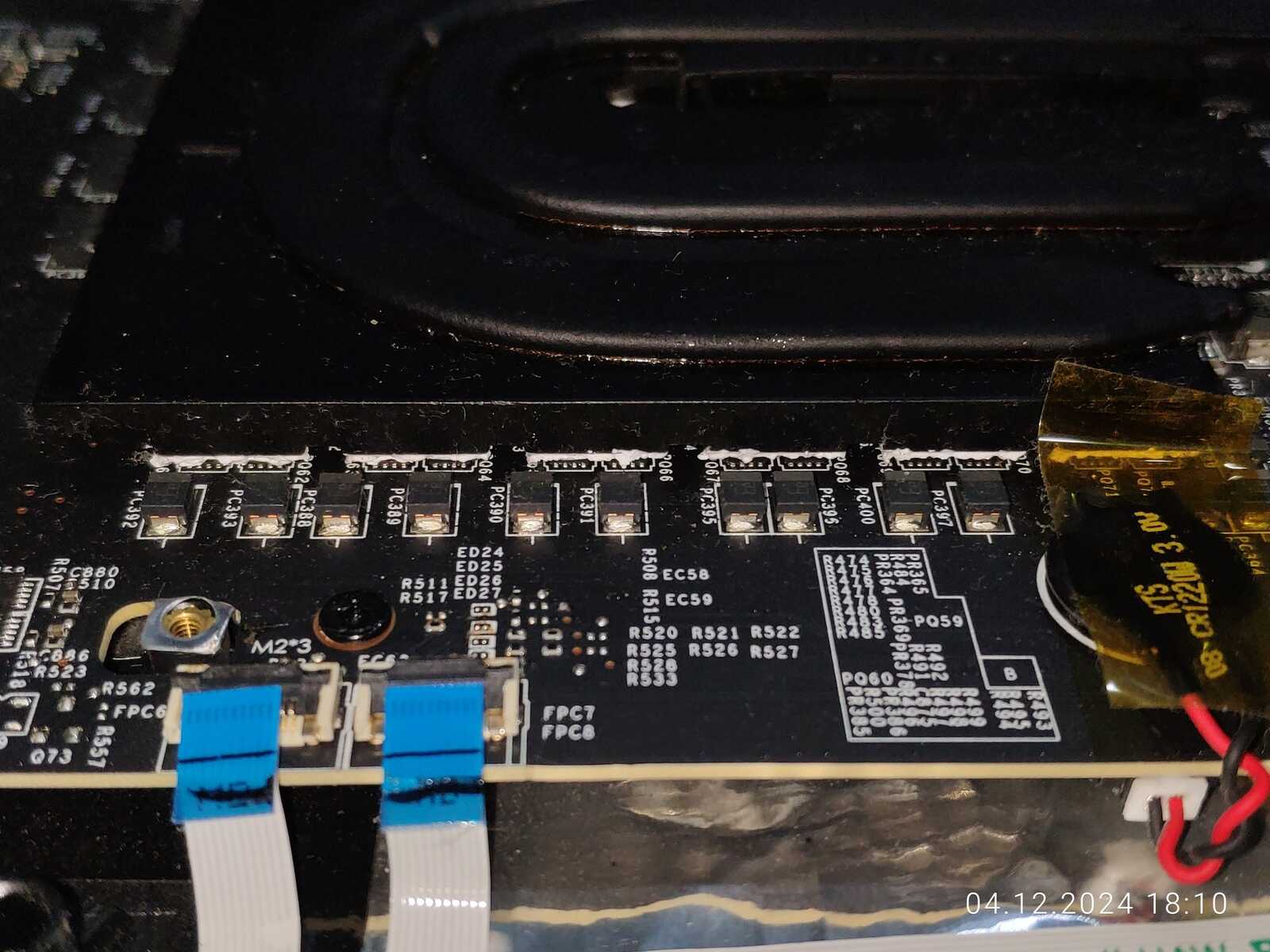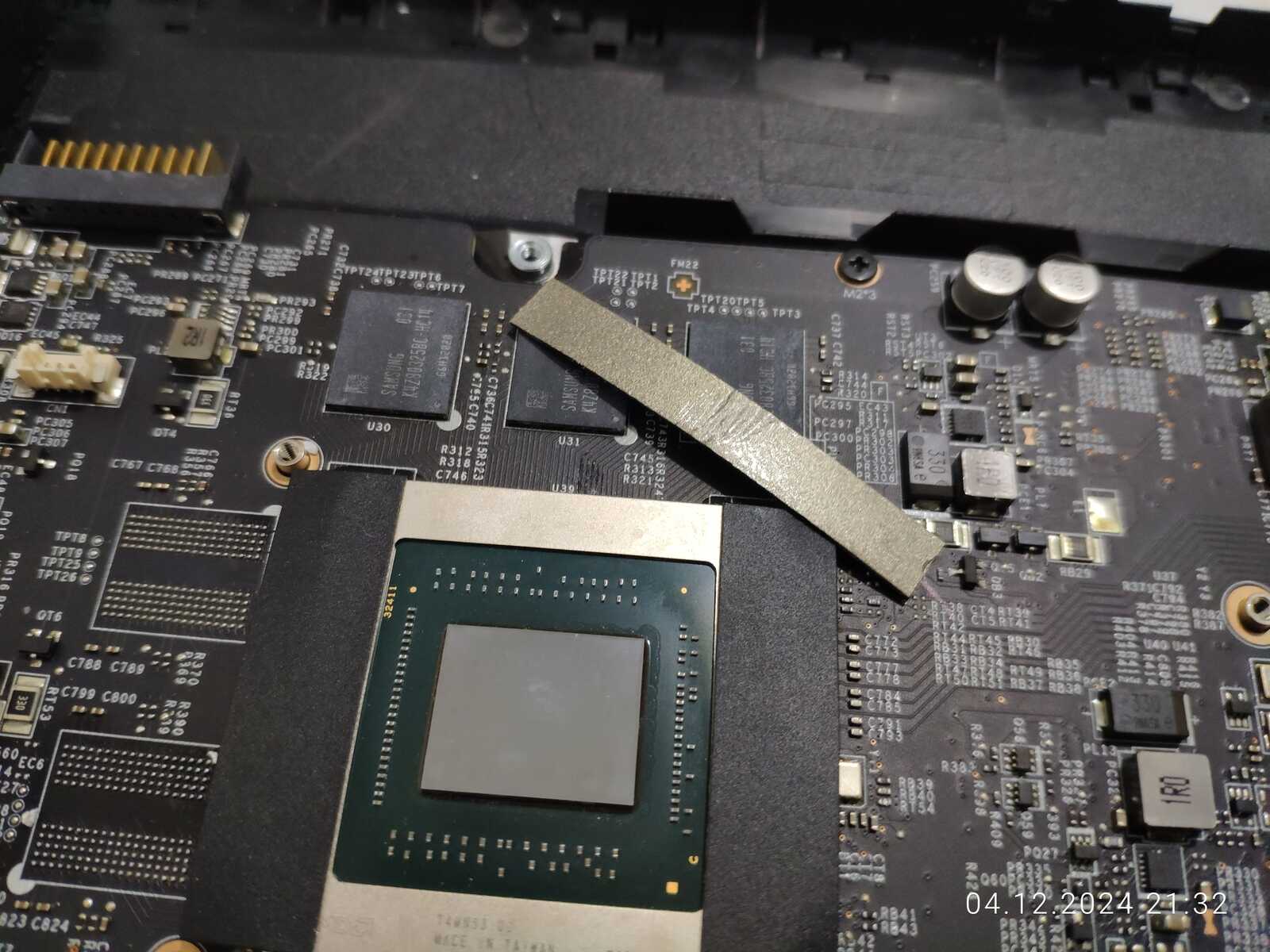 Заводское нанесение жидких прокладок тоже вызывает много вопросов, некоторые чипы памяти не охлаждались, ибо жидкие прокладки явно были раздавлены перекосом при установке системы охлаждения, от чего образовались пещеры между чипами и радиатором...