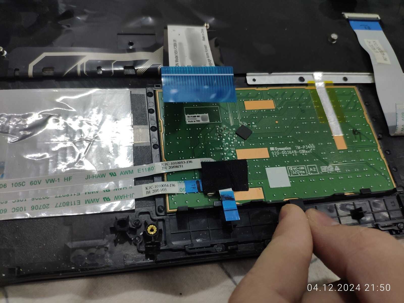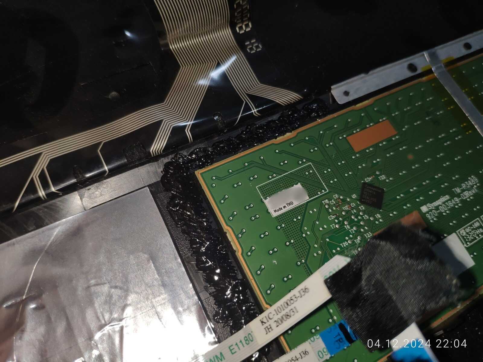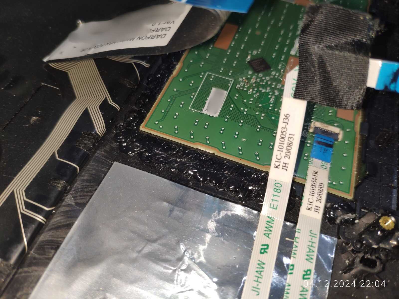 Подбираюсь к тачпаду, да, это отвал тачпада, все пластиковые заклёпки отвалились с одной стороны.