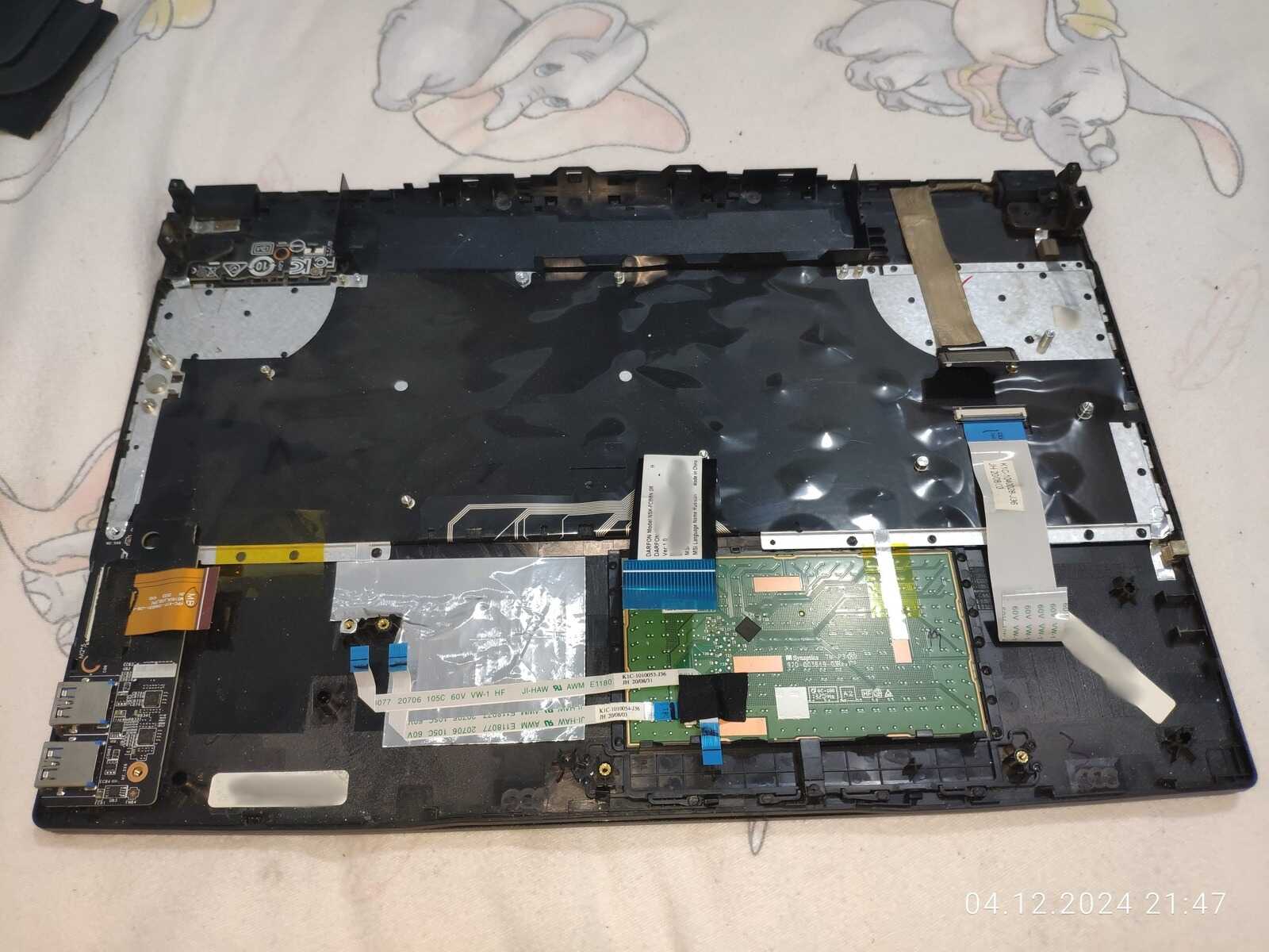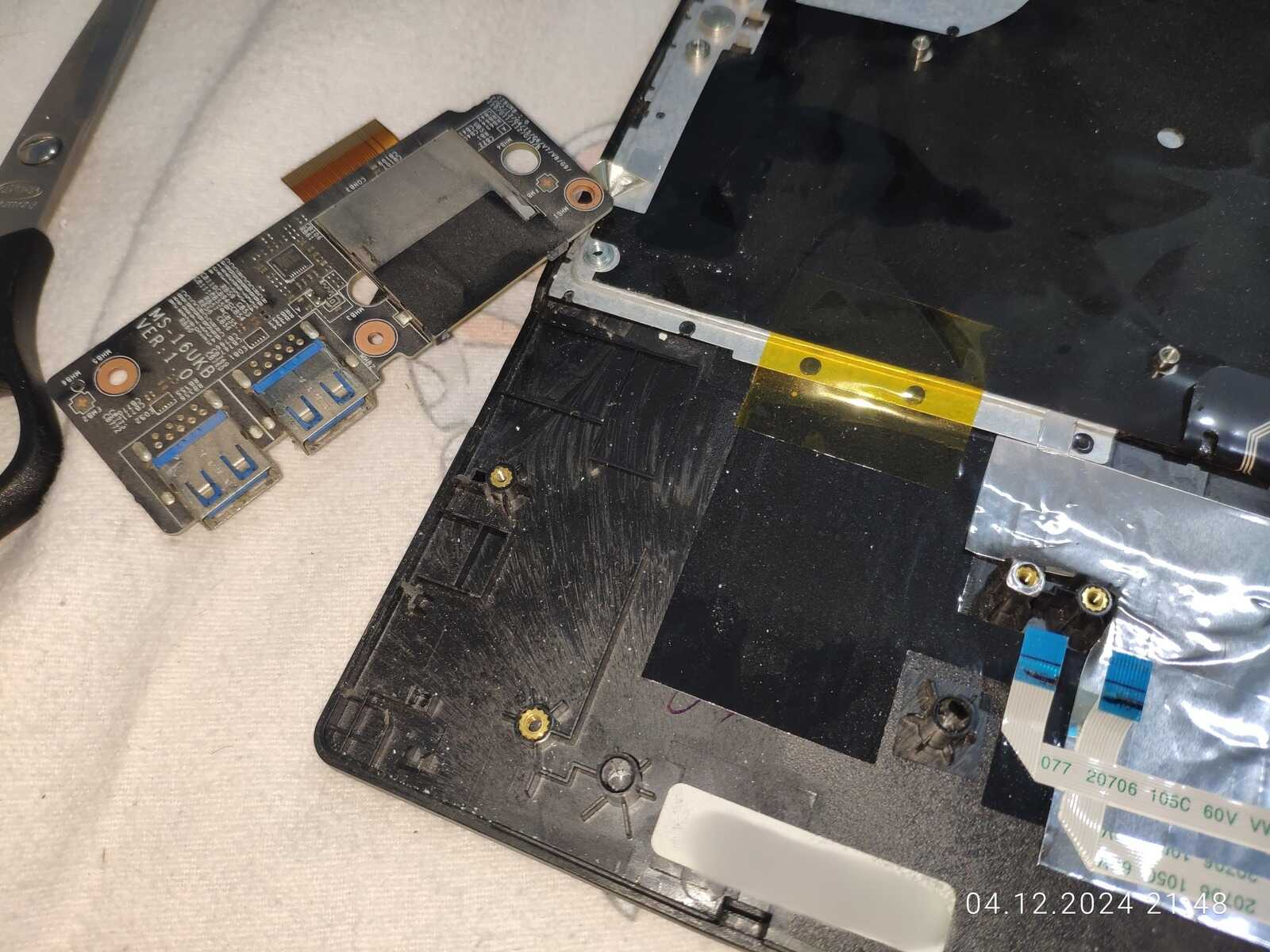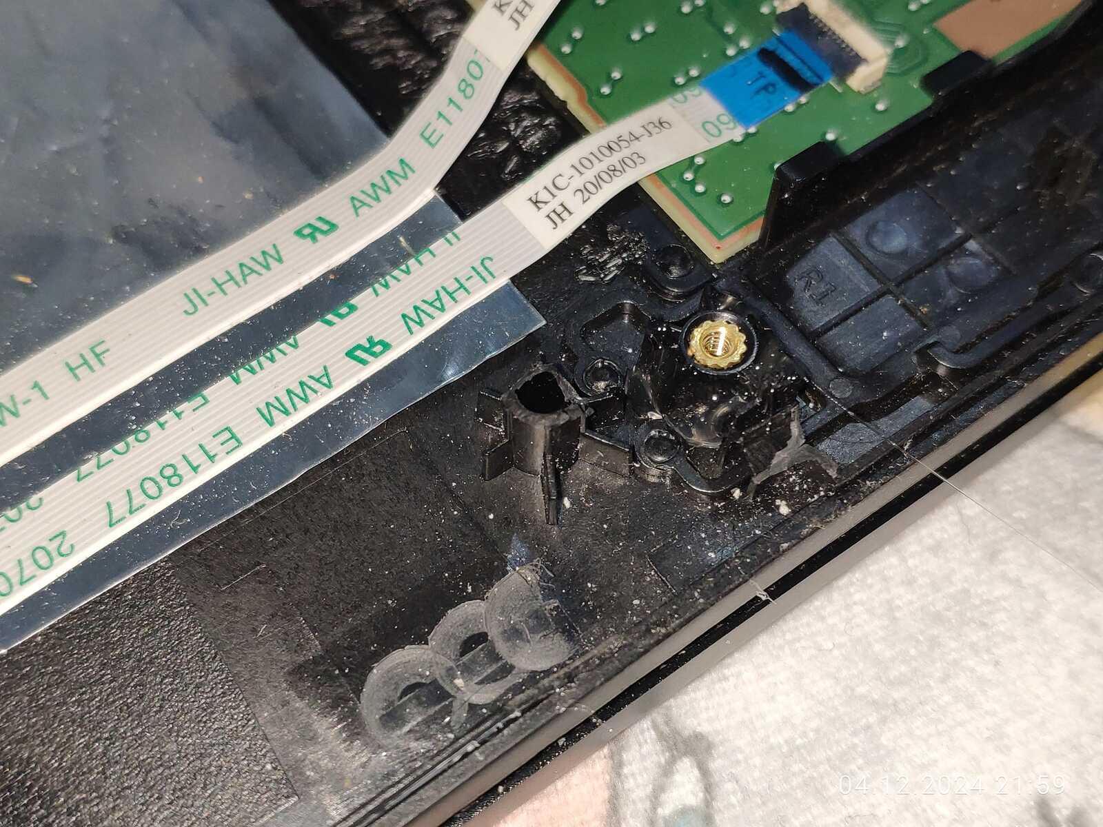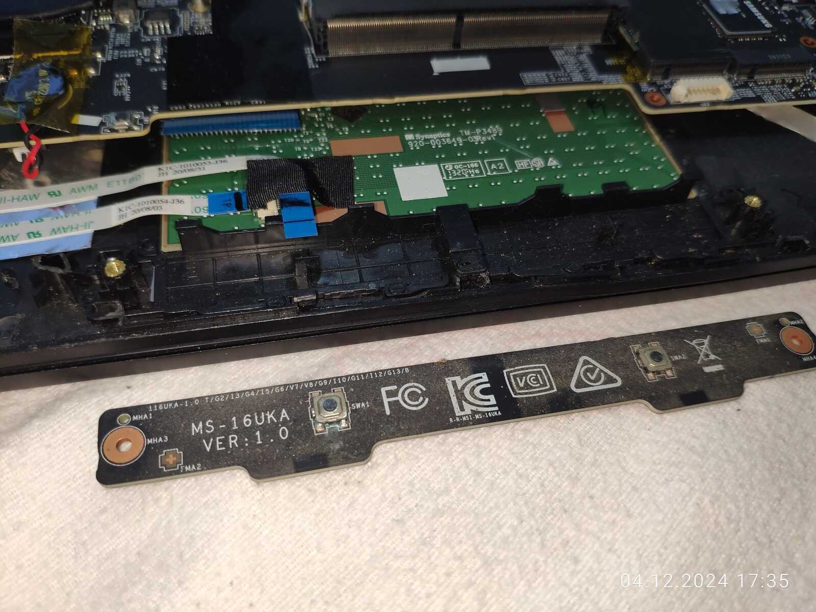 Подбираюсь к тачпаду, да, это отвал тачпада, все пластиковые заклёпки отвалились с одной стороны.