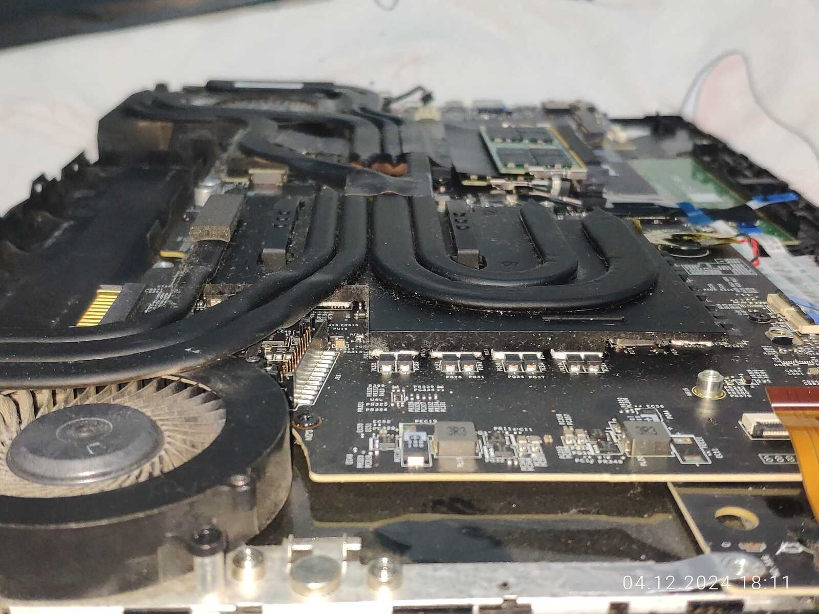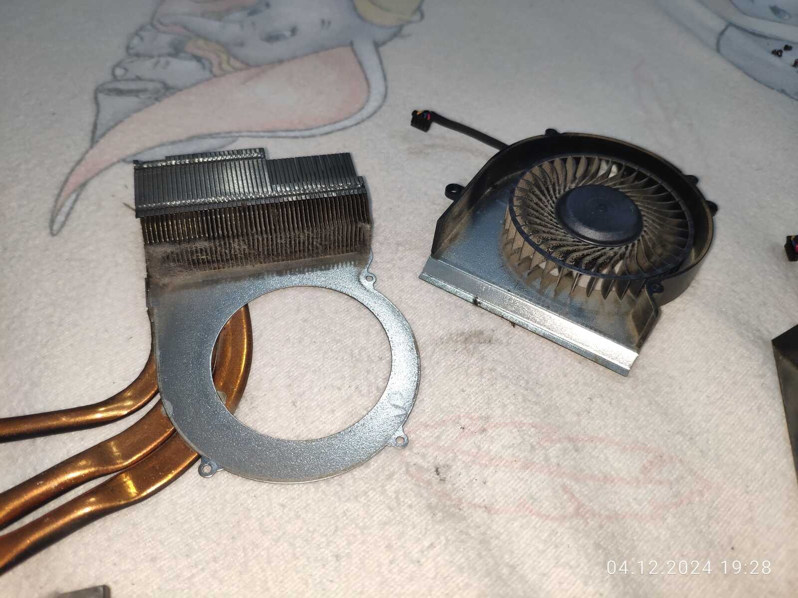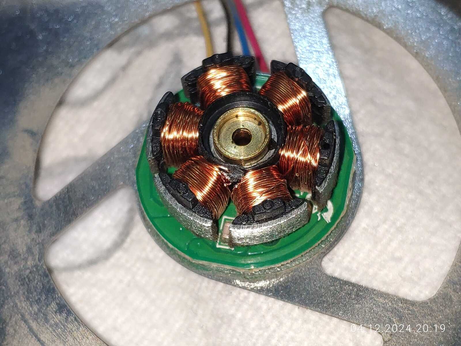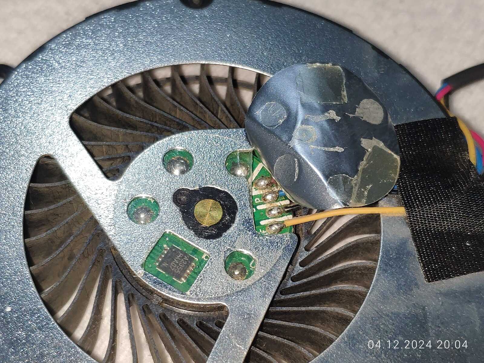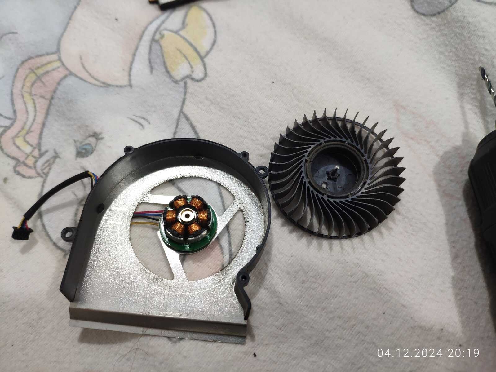 К сожалению, турбина от другого ноутбука слишком габаритная, ну и тонкая, её невозможно установить в MSI Alpha 15, увы, потому попытался исправить обмотки двигателя, но бросил эту возню, слишком много повреждений, а перематывать у меня нет проволоки подходящей.